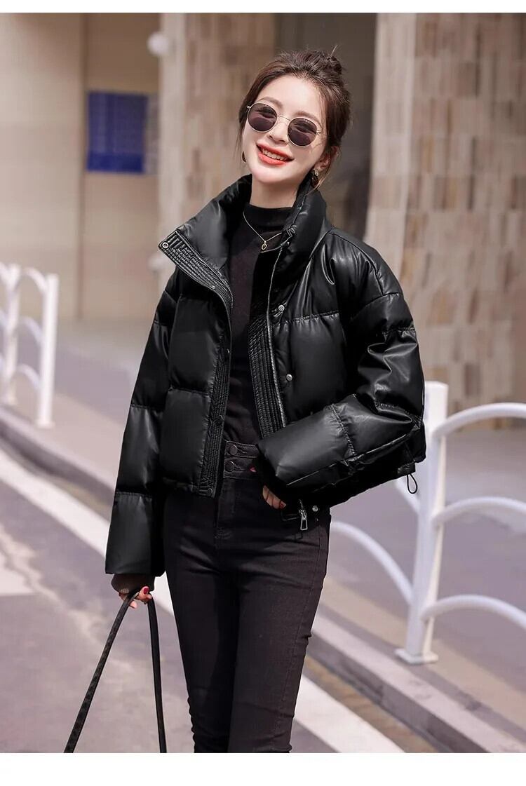 送料無料 ジャケット フラウエン アウトウェア 2024 冬 Neue Stil Lose Verdicken Winddicht Kurze Leder Mantel Weibliche Warme Parker Mäntel ウィンター 冬物 AE55455444646036808