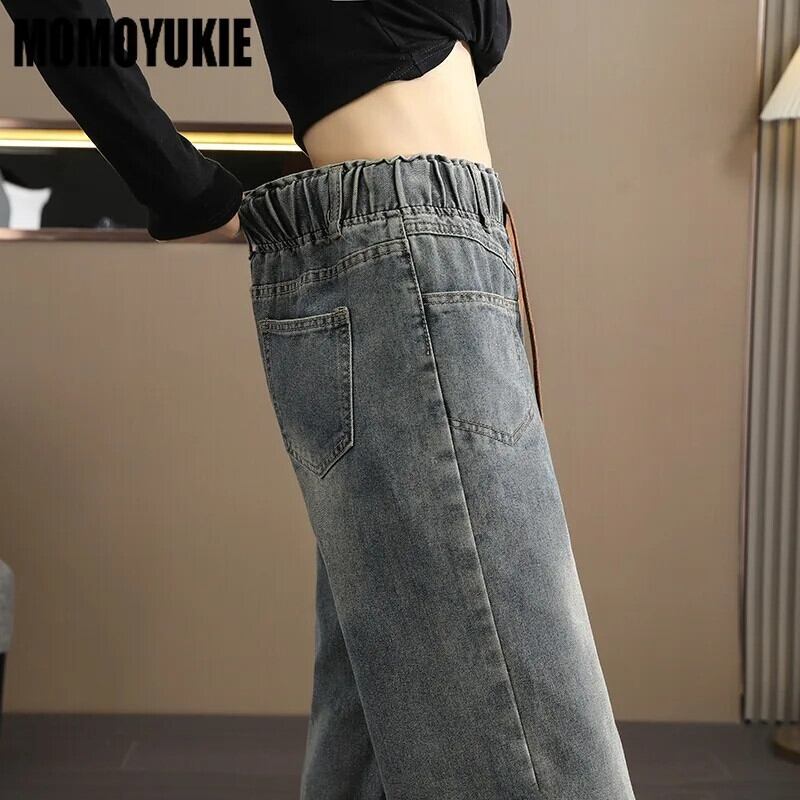 送料無料 2024 Herbst 冬 Frauen gerade ジーンズ Kordel zug Taschen hohe elastische Taille in voller Länge koreanischen Stil loss Retro einfache ジーンズ レトロ ウィンター 冬物 AE55455486179354969