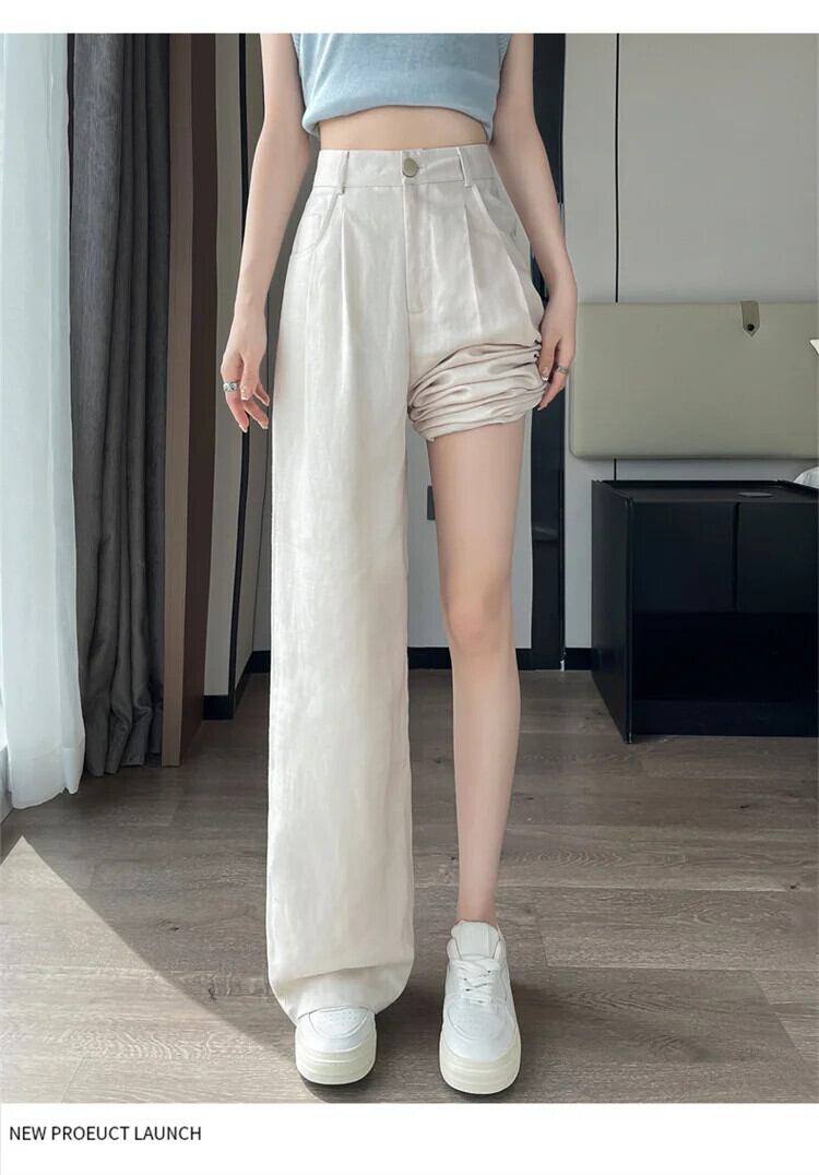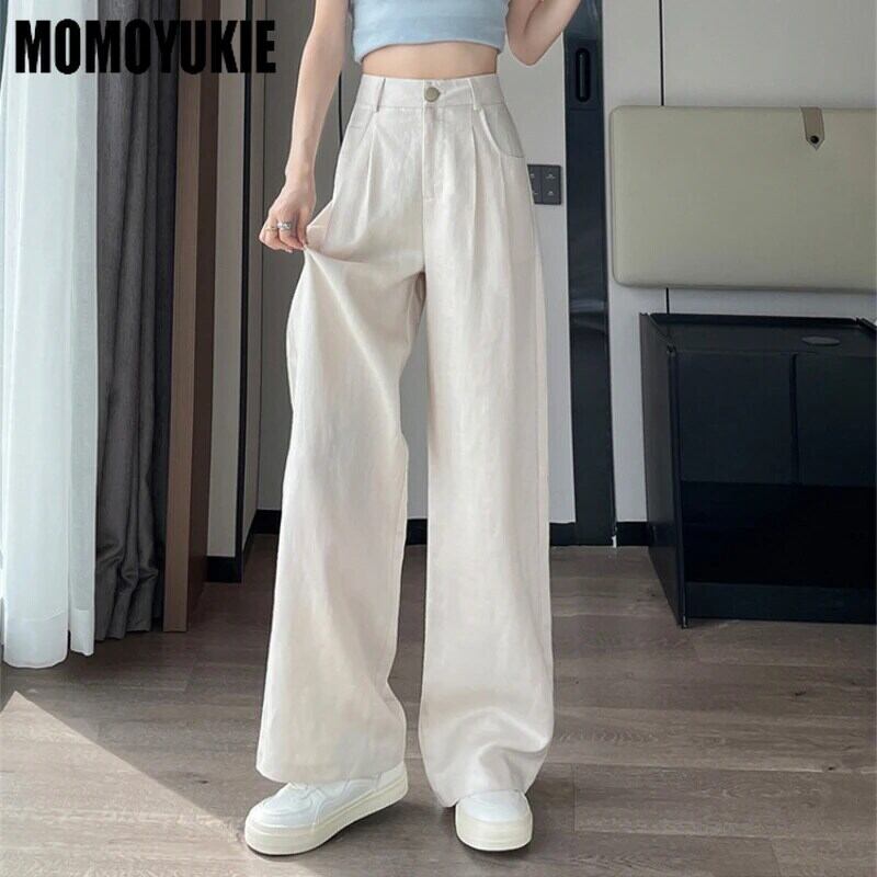 送料無料 Dames Wijde Pijpen Broek ヴィンテージ ストリートウェア 2024 Lente Zomer Veelzijdige Hoge Taille Stevige All-Match Broek オフィス レディー ビンテージ 会社 学校 通勤や通学にも AE55455423904498652