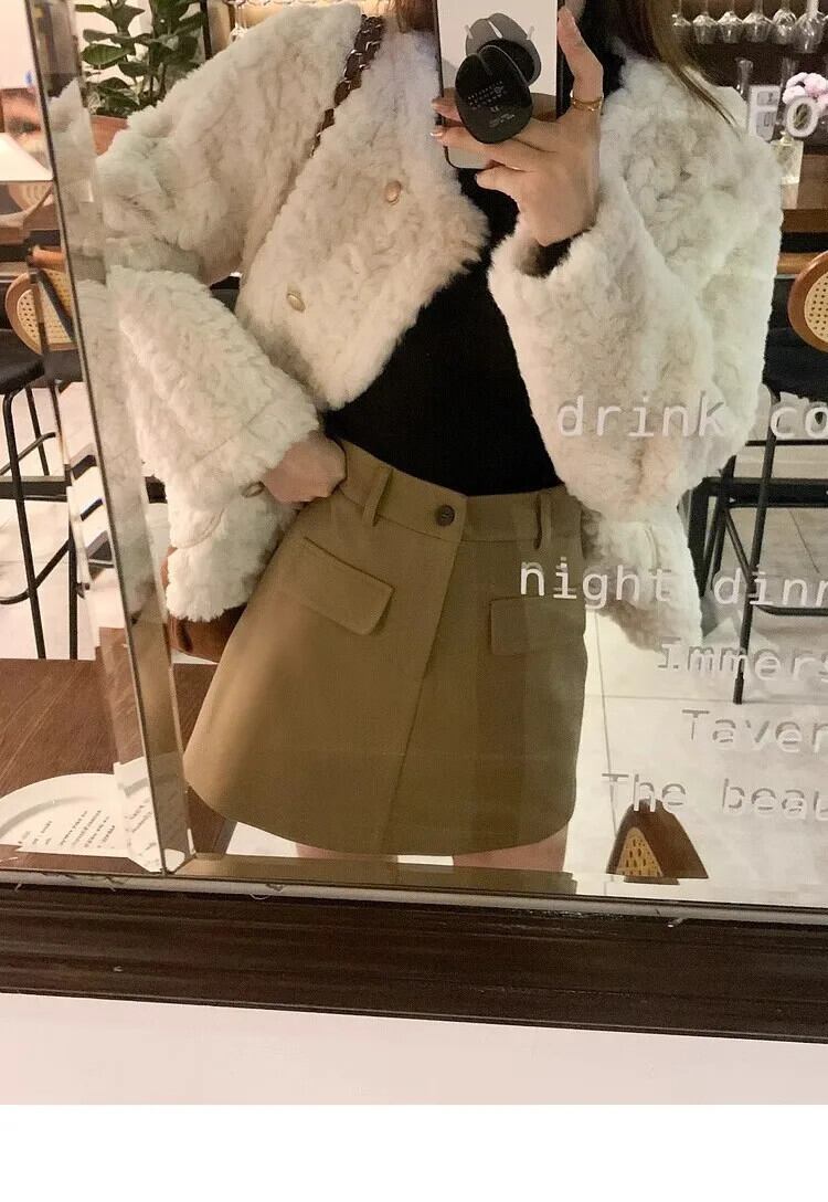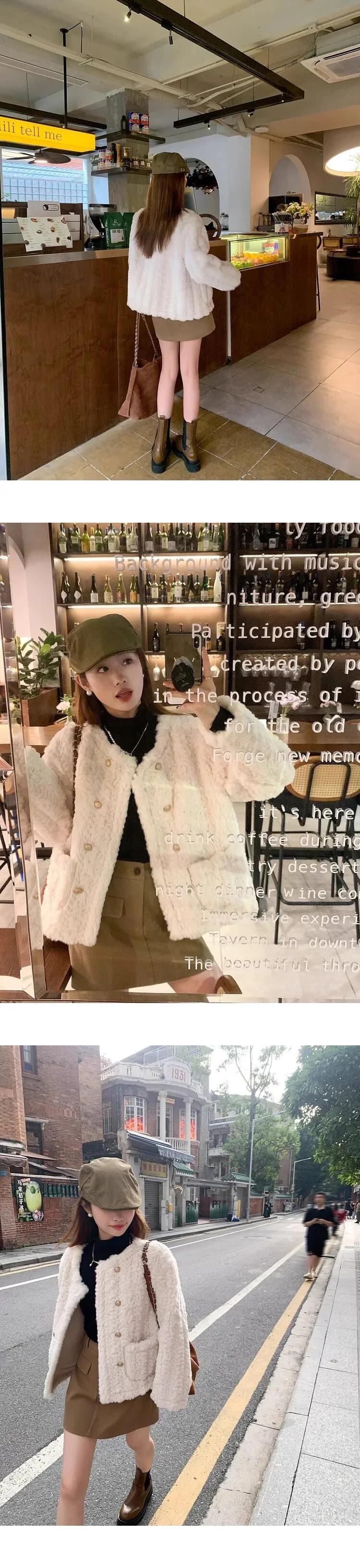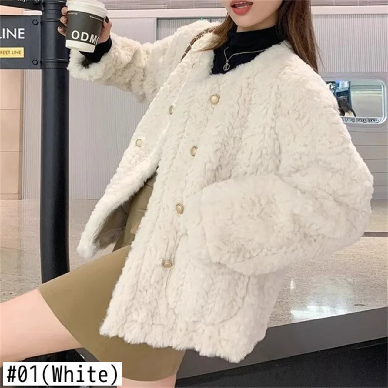 送料無料 2024 herbst 冬 Dicke Warme Mantel Frauen ische Mode Zweireiher Plüsch Kurze Jacke Damen ストリートウェア アウター Kleidung ウィンター 冬物 AE55455420105214255