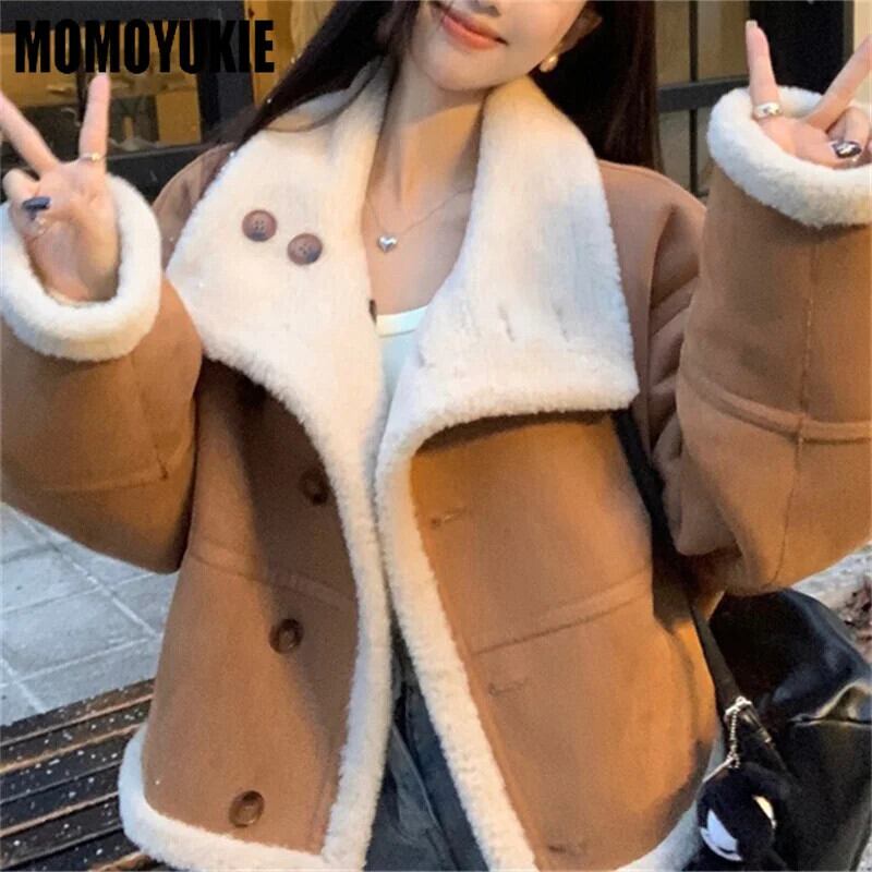 送料無料 Damen mantel 2024 Herbst/Winter koreanische Ausgabe lässig loss vielseitige Turn-Down-Kragen verdickte doppelseitige Pelz jacke Kleidung ウィンター 冬物 AE5545548910332426