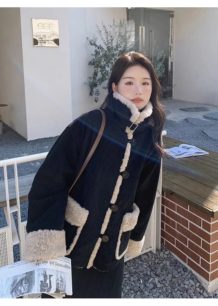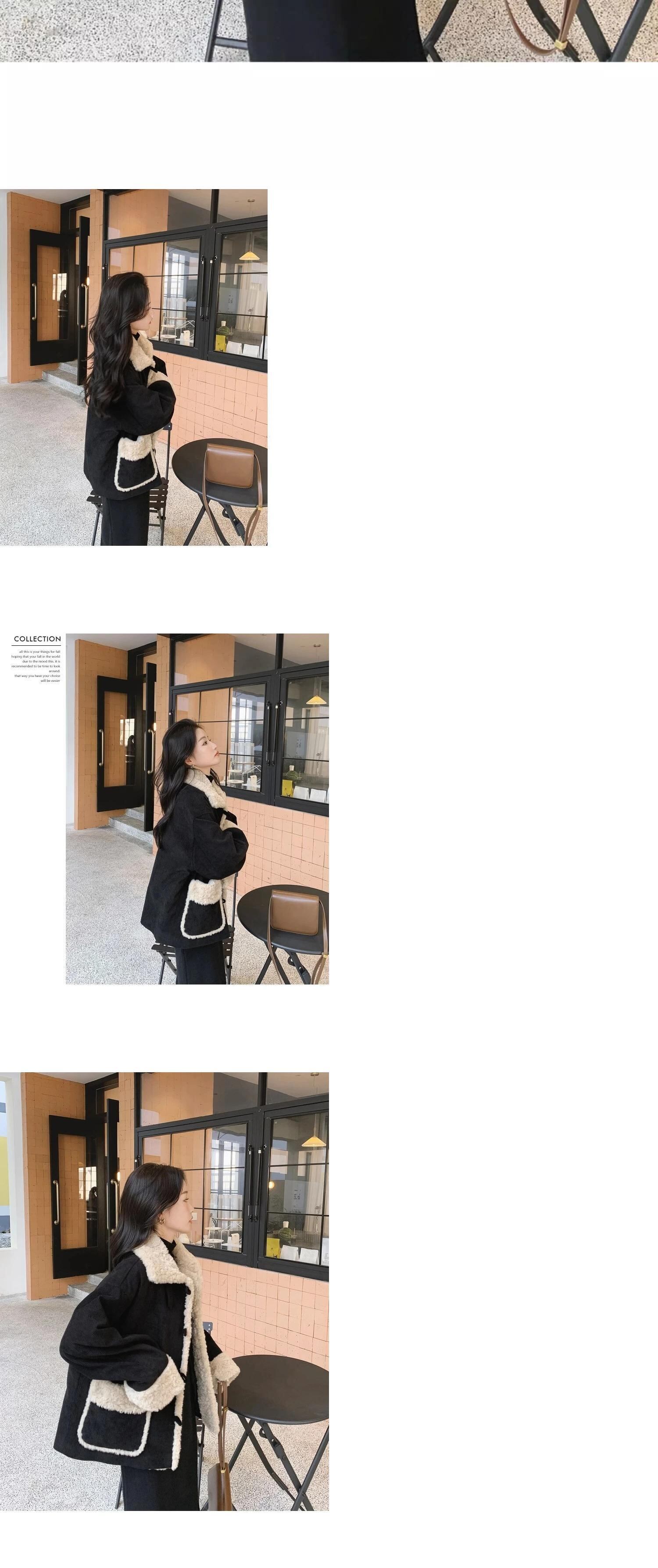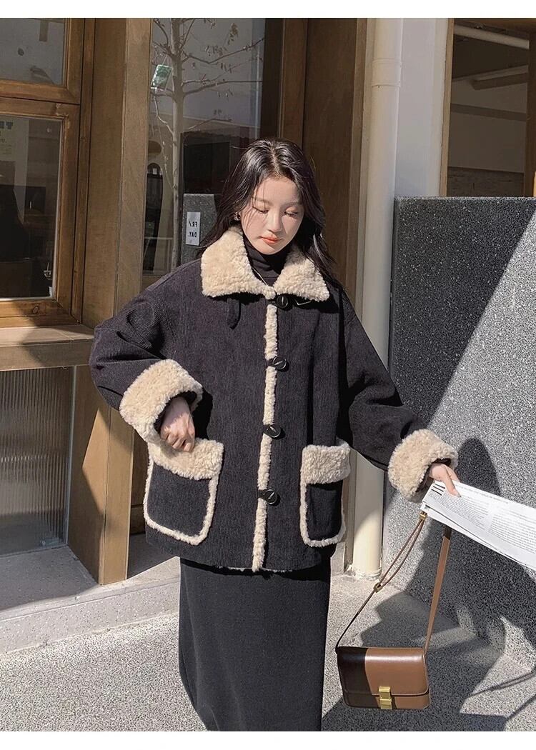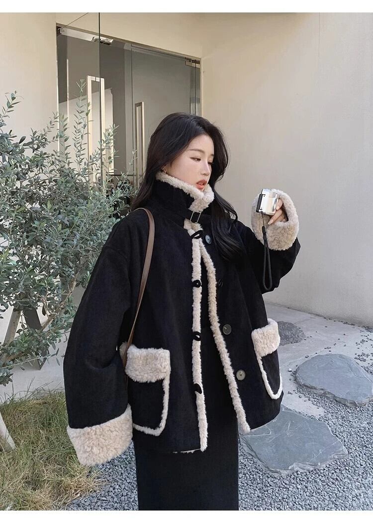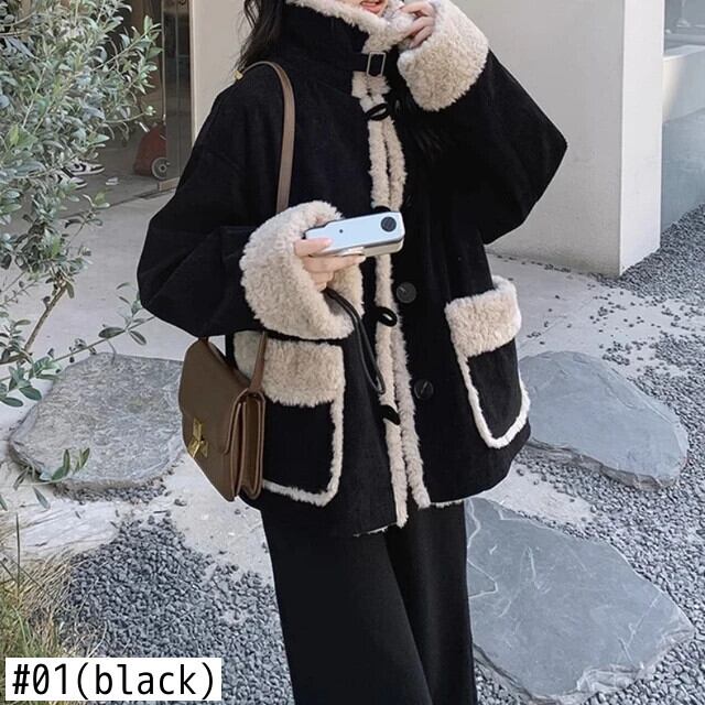 送料無料 レトロコードパッチワークジャケット Frauen Neue Stil Dicke Beiläufige Lose Oberbekleidung Kleidung Tasche Lamm Haar 2024 Herbst Winter Mantel ウィンター 冬物 AE55455465303886846