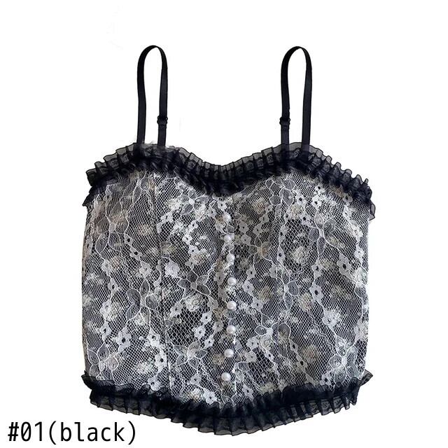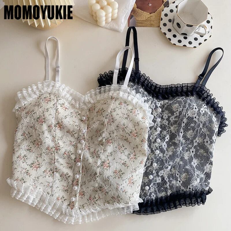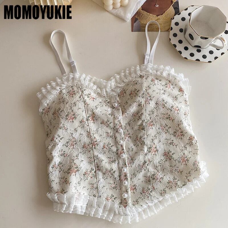 送料無料 2024 サマー セクシー フラウエン タンク トップ Blumen Leibchen süße ärmellose キャミソール Frankreich Stil Spitze Perle Knopf Decorationen Mode キャミソール AE55455454933257395