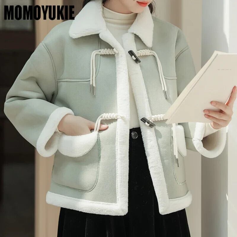 送料無料 Kurze Jacke aus Wildlederimitat aus Lammwolle Damen、冬、2024、新しい韓国バージョン、ロッカー、評決、ウォームス、Gefühl aus Lammwolle ウィンター 冬物 AE55455467290195893