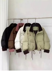 送料無料 2024 Winter frauen Gestrickte Ärmel Kragen Jacke Revers Warme Jacke Parkas Kragen Lose Farbe Kollision Kleidung ウィンター 冬物 AE55455456811317031