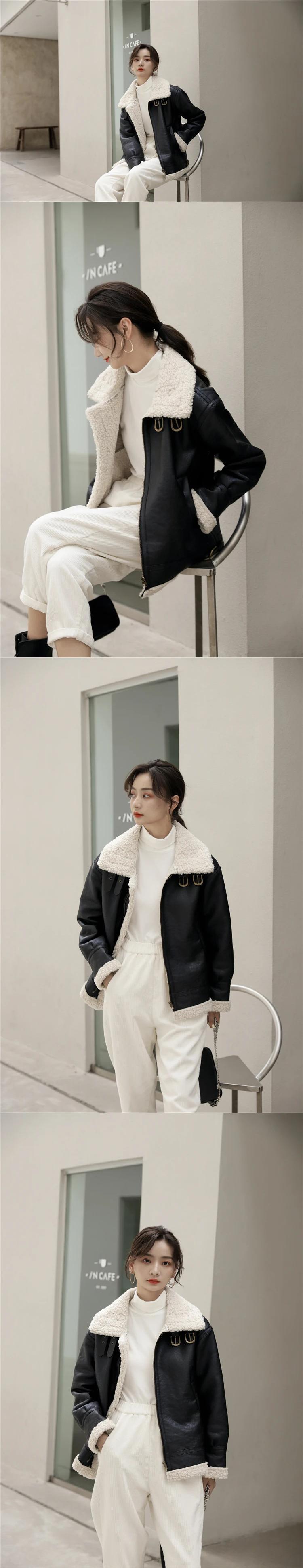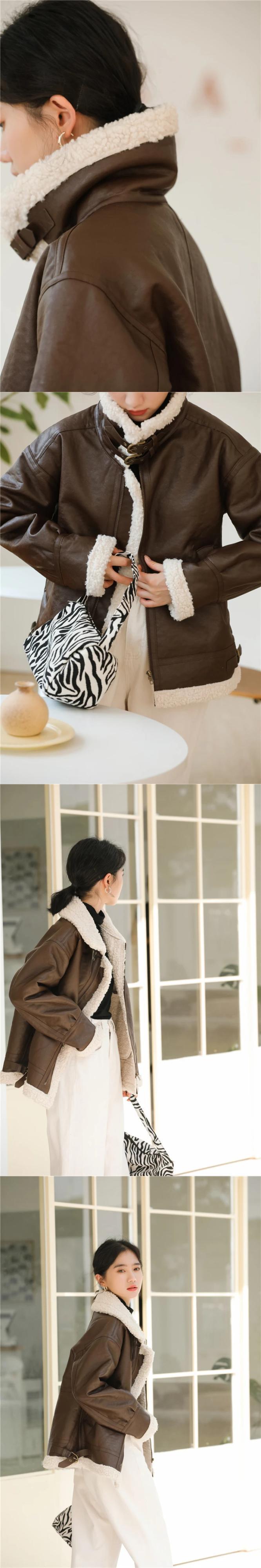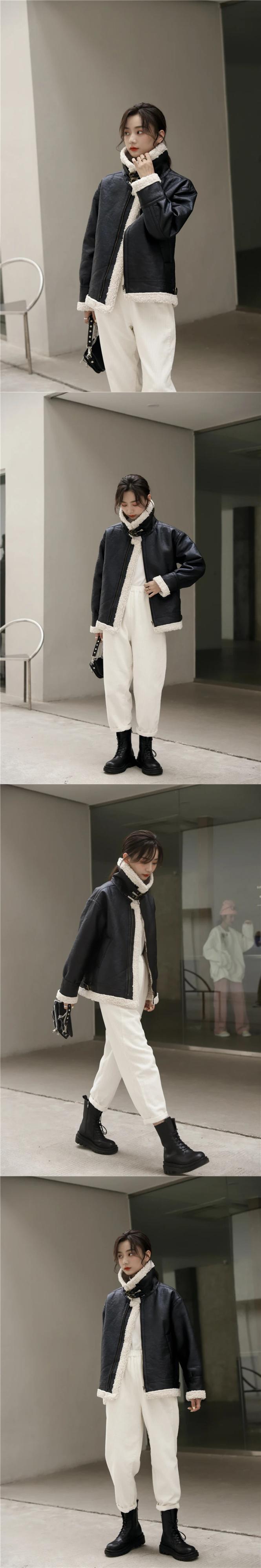 送料無料 2024 Winter neuen Stil lässig los Frauen Streetwear Kunst lamm Leder Fell kurze Jacke Moto Biker Dicken Warmen Schaffell Mantel ストリート ウィンター 冬物 AE55455447515677444