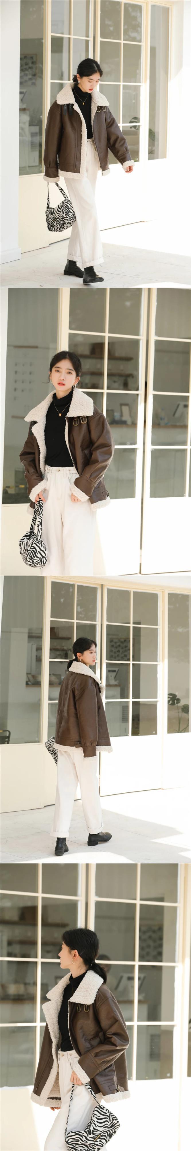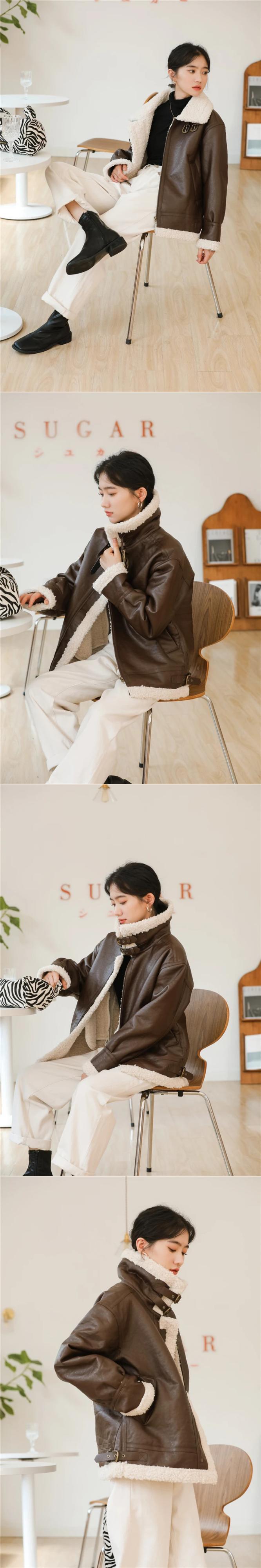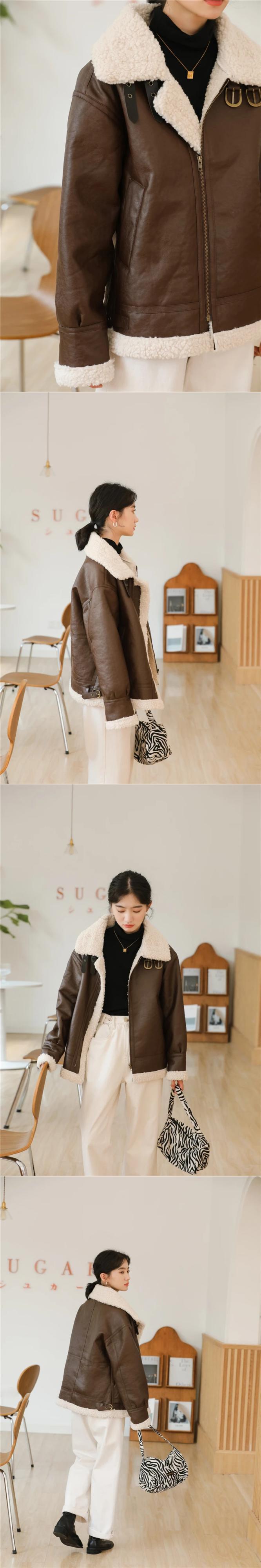 送料無料 2024 Winter neuen Stil lässig los Frauen Streetwear Kunst lamm Leder Fell kurze Jacke Moto Biker Dicken Warmen Schaffell Mantel ストリート ウィンター 冬物 AE55455447515677444