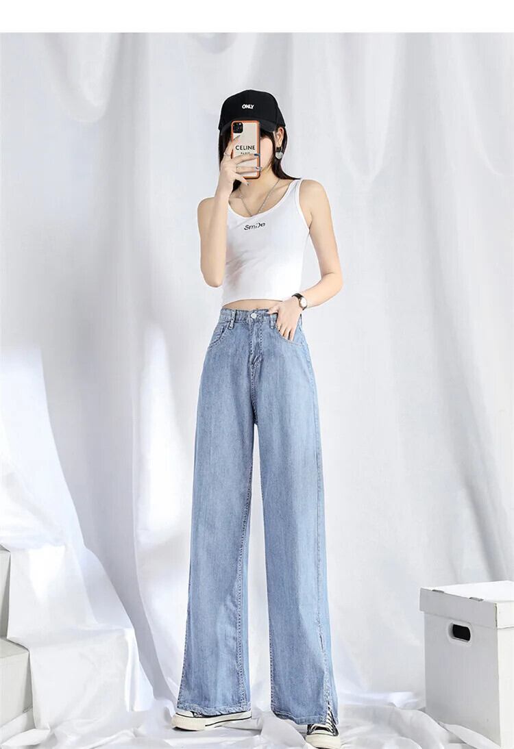 送料無料 ワイドレッグ ジーンズ Frauen neue leichte und dunne hohe Taille Split schlanke breite Bein gerade Rohr loss Retro y2k Ästhetik vielseitig レトロ ワイドパンツ AE55455461770425698