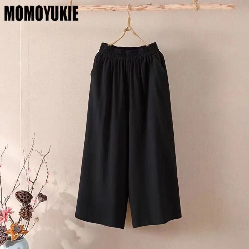 送料無料 2024 Herbst neuen Stil Baumwolle Leinen weites Bein Hosen atmungsaktiv loss gerade Hosen Mode lässig elastische Taille lange Hose AE55455416121674874