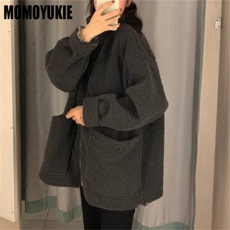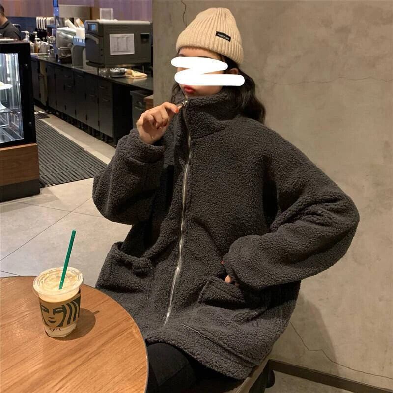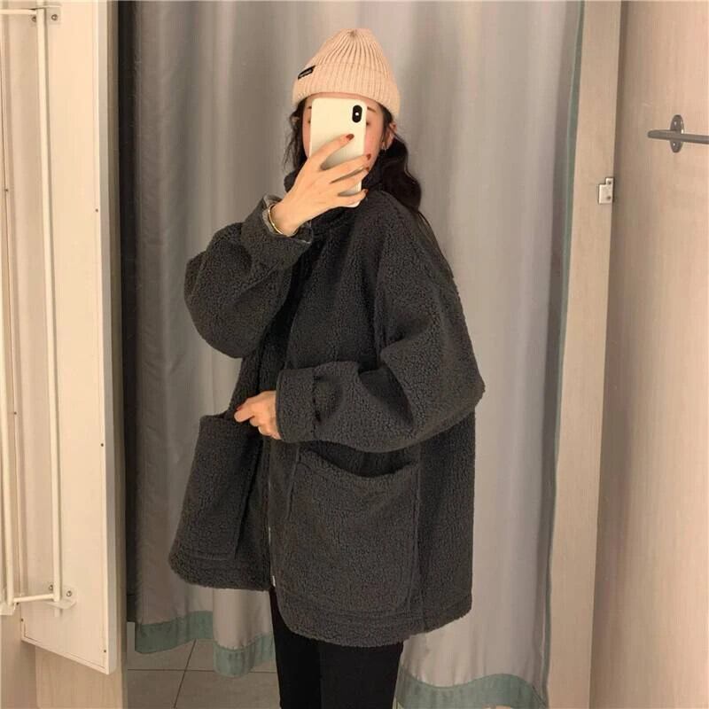 送料無料 ウールラムの長袖コート、暖かいカイジャケット、ジッパー、スタンドカラー、聞こえるポケット、エレガント、無地、ラグジュアリーなアウター、秋冬、2022 AE55455466647423950