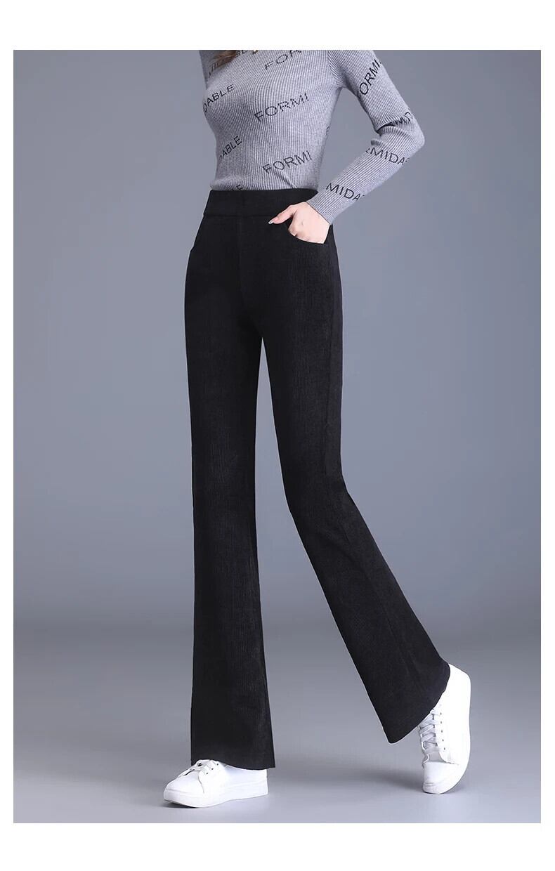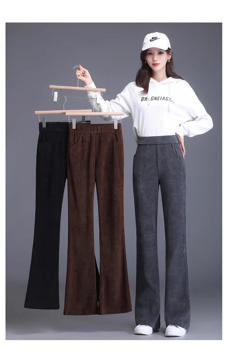 送料無料 フラウエン ホーゼン 2024、冬 Neue Stil Vielseitig Hinzufügen Samt Abnehmen Hohe Taille Reine Farbeストレッチ Lose Ausgestelltes Hosen ウィンター 冬物 AE55455461120510572