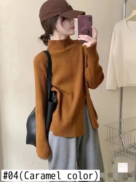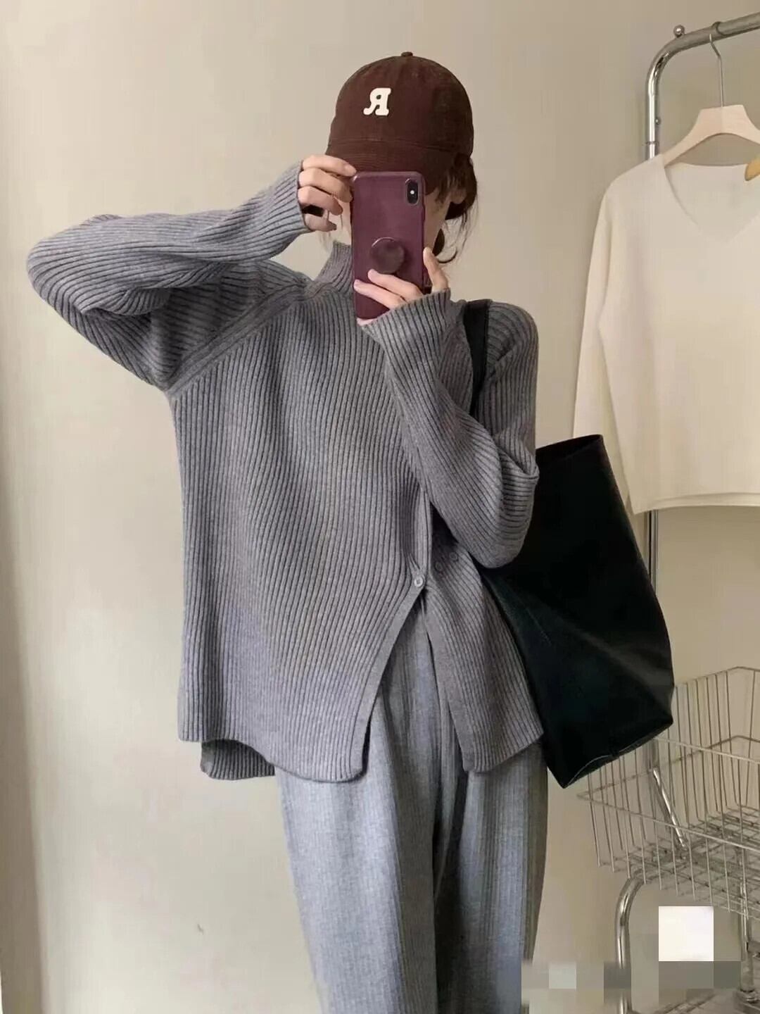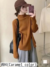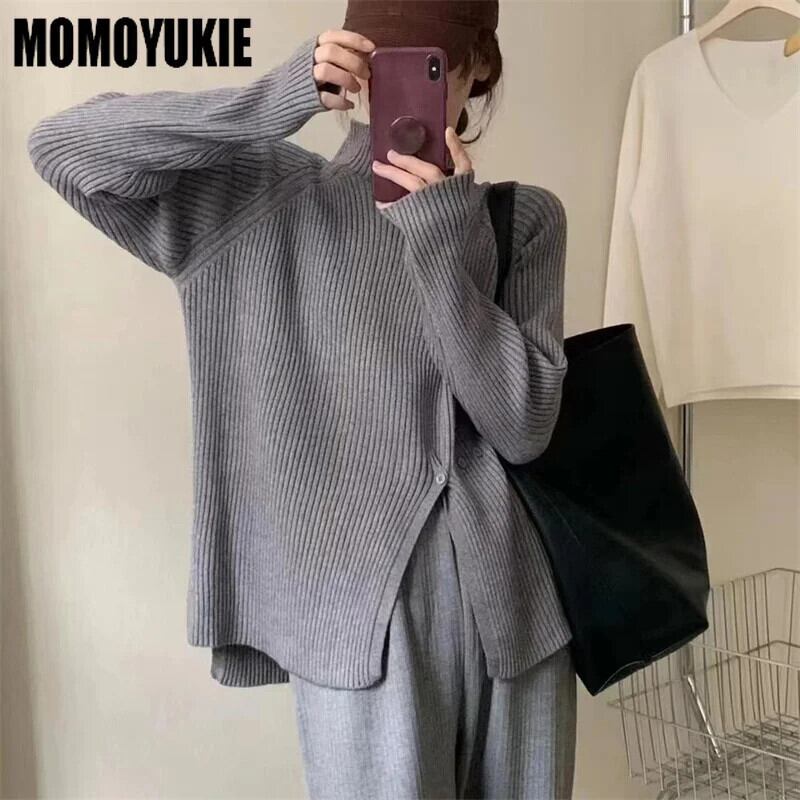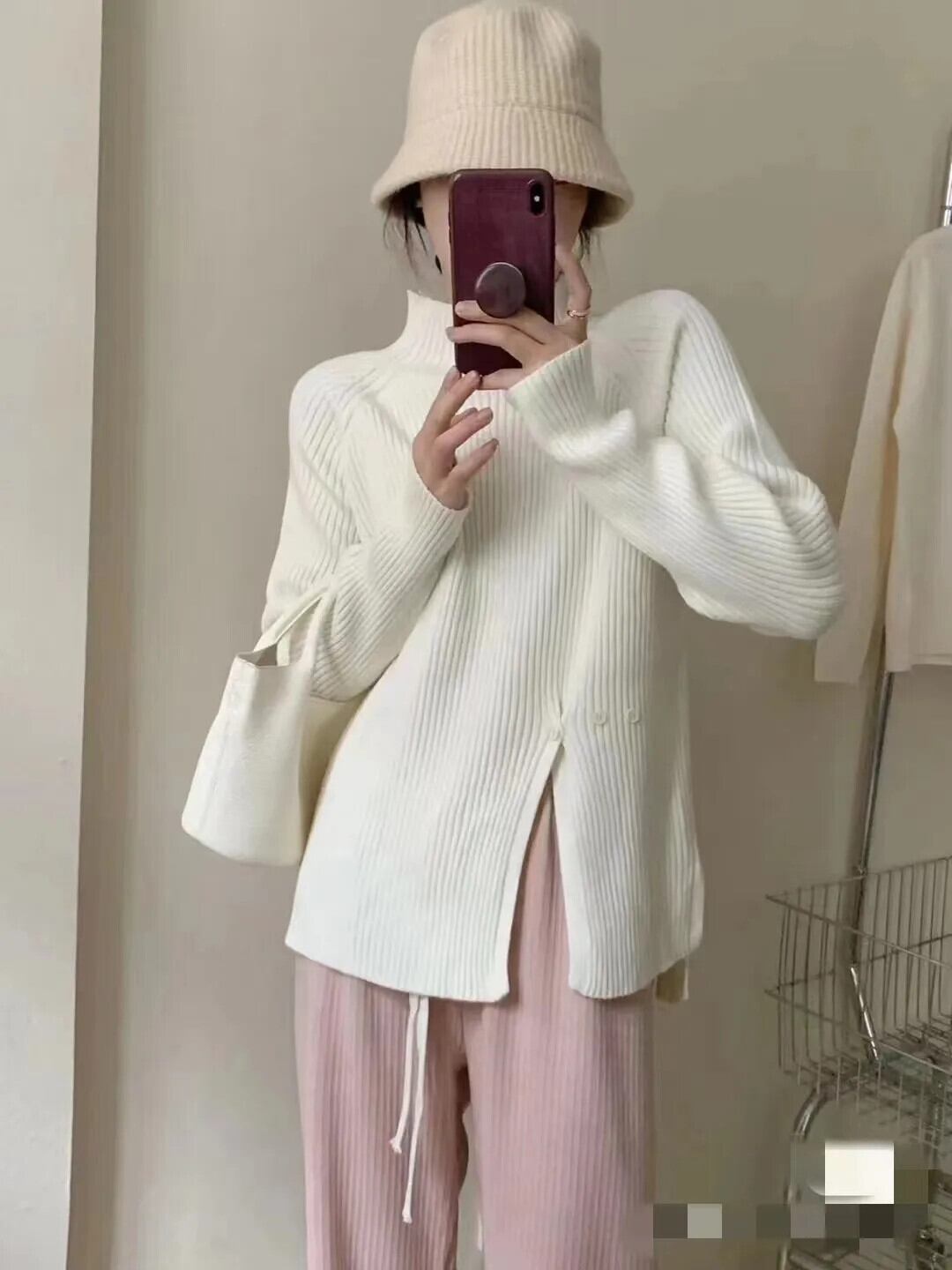 送料無料 2024 Herbst 冬 Frauen プルオーバー プルオーバーロール kragen lässig Split Gabel Knopf Chic プルオーバー weibliche schlanke Strick oberteil weiche プルオーバートップス ウィンター 冬物 AE55455448288784290