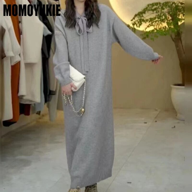 送料無料 Gestrickte Wolle Frauen Kleid 2024 Herbst Winter Neue Stil Retro Lose Bequeme Kapuze Tragen プルオーバー Langen Rock レトロ ウィンター 冬物 AE55455464998031998