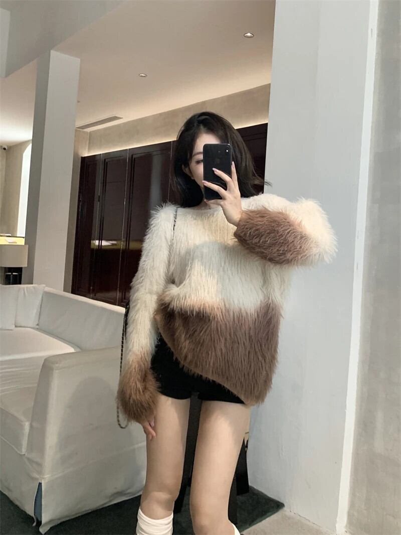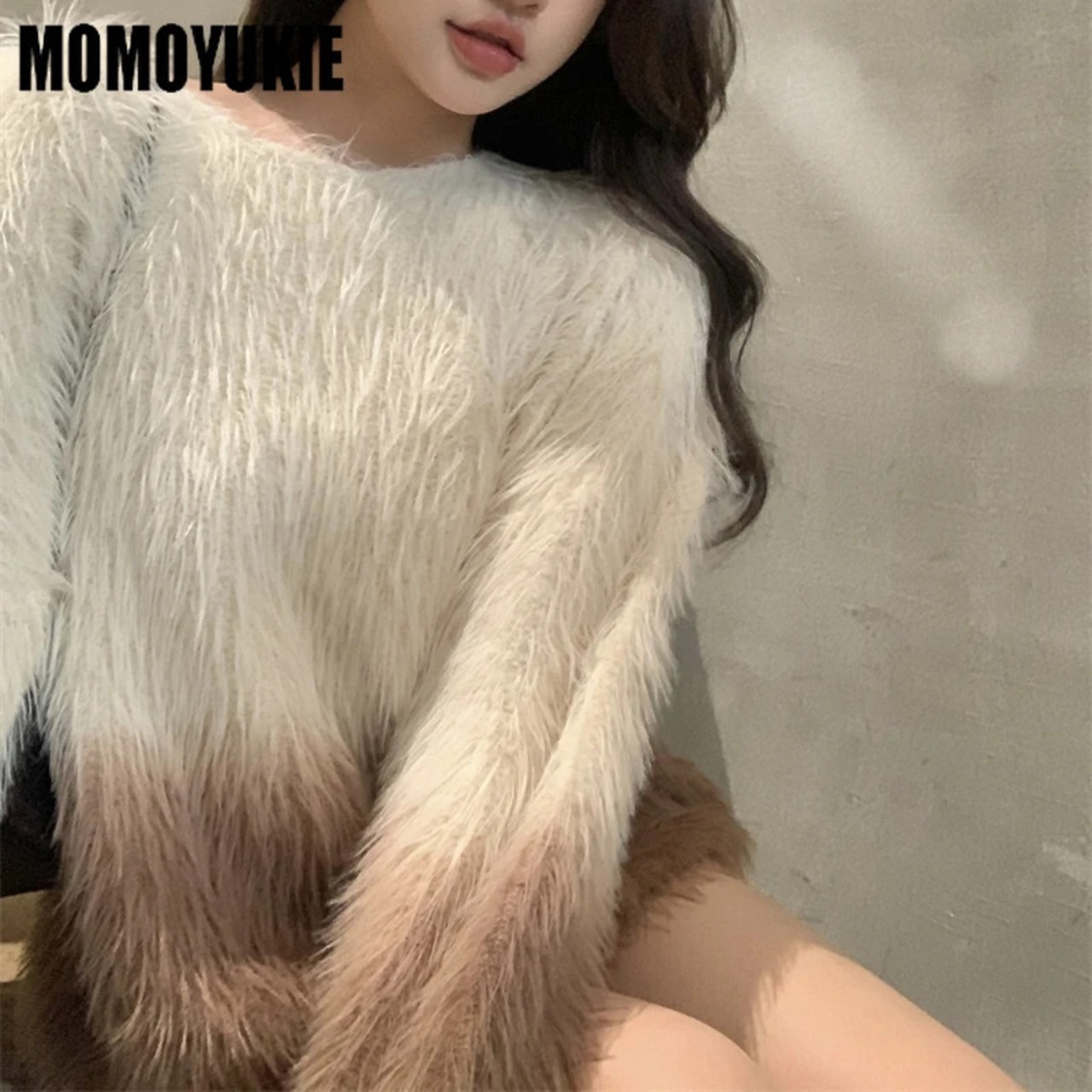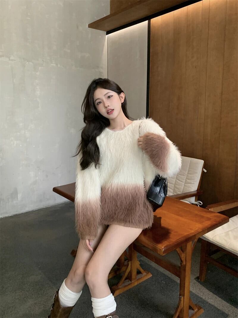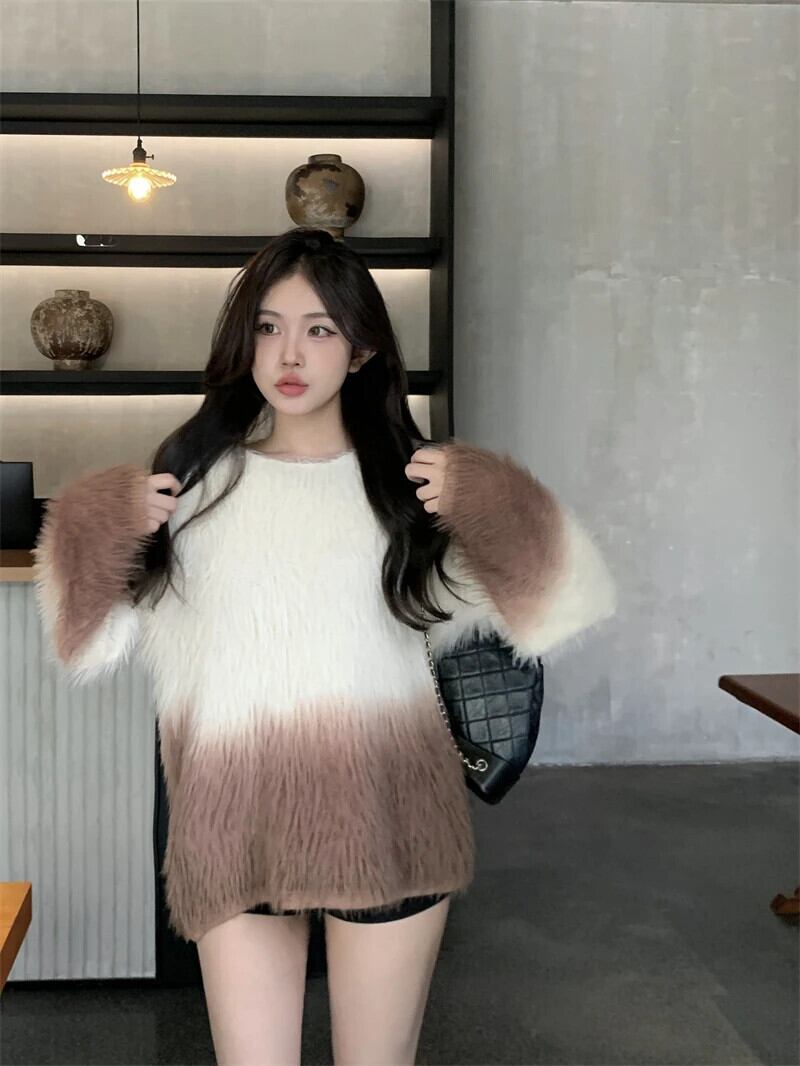 送料無料 レディース,ミドル様イミテーションミンクウールセーター,グラデーションプルオーバー,カジュアルトップ,ルーズフィット,秋冬,新作,2022 AE55455425288116384
