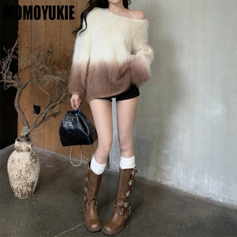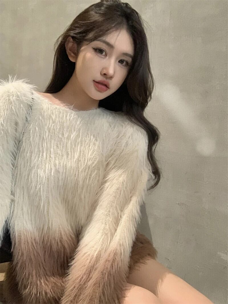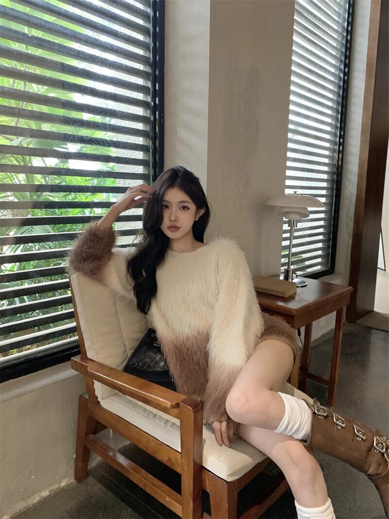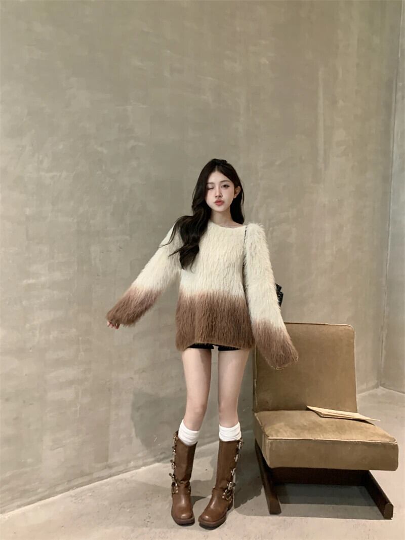 送料無料 レディース,ミドル様イミテーションミンクウールセーター,グラデーションプルオーバー,カジュアルトップ,ルーズフィット,秋冬,新作,2022 AE55455425288116384