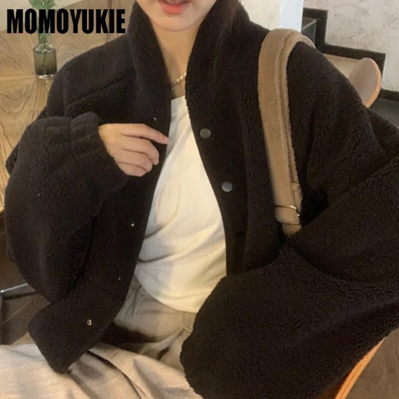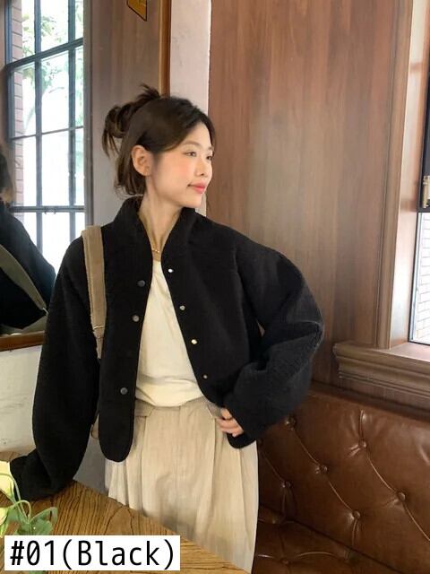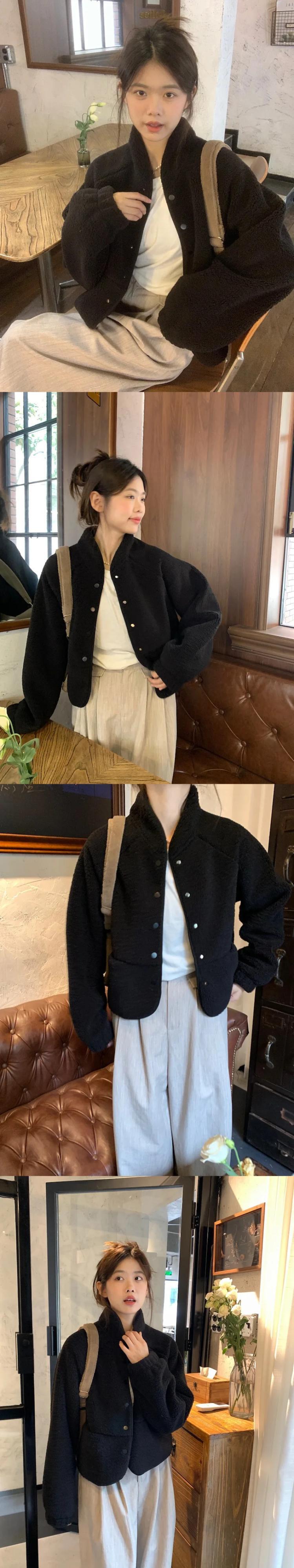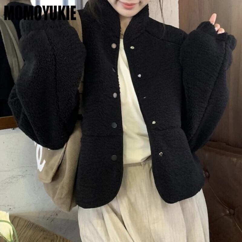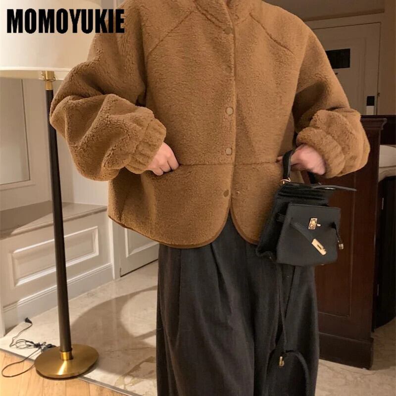 送料無料 フェイクラムウールジャケット、スタンドアップカラーコート、レディースルーズショートアウター、エレガントでソフト、ヴィンテージでカジュアル、2024冬 AE55455420245160447
