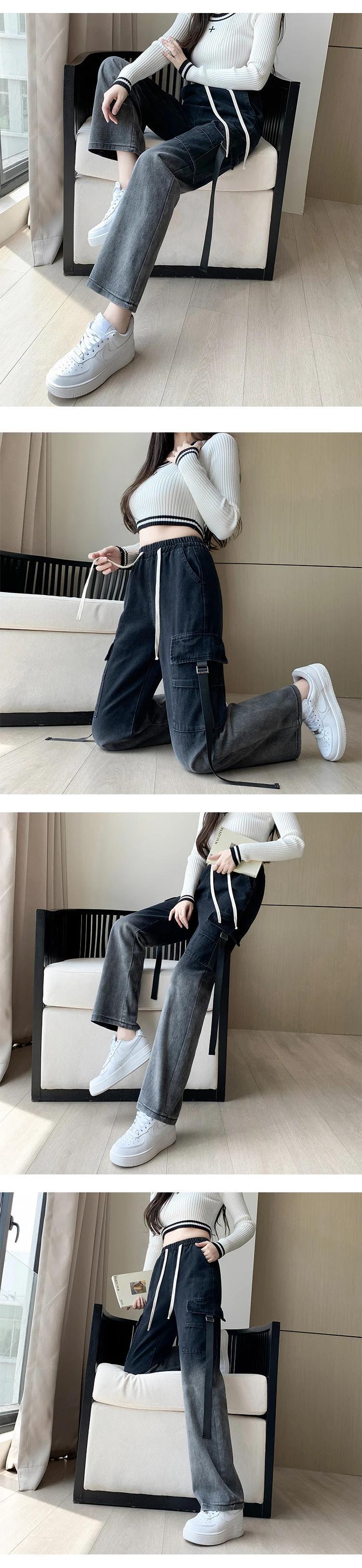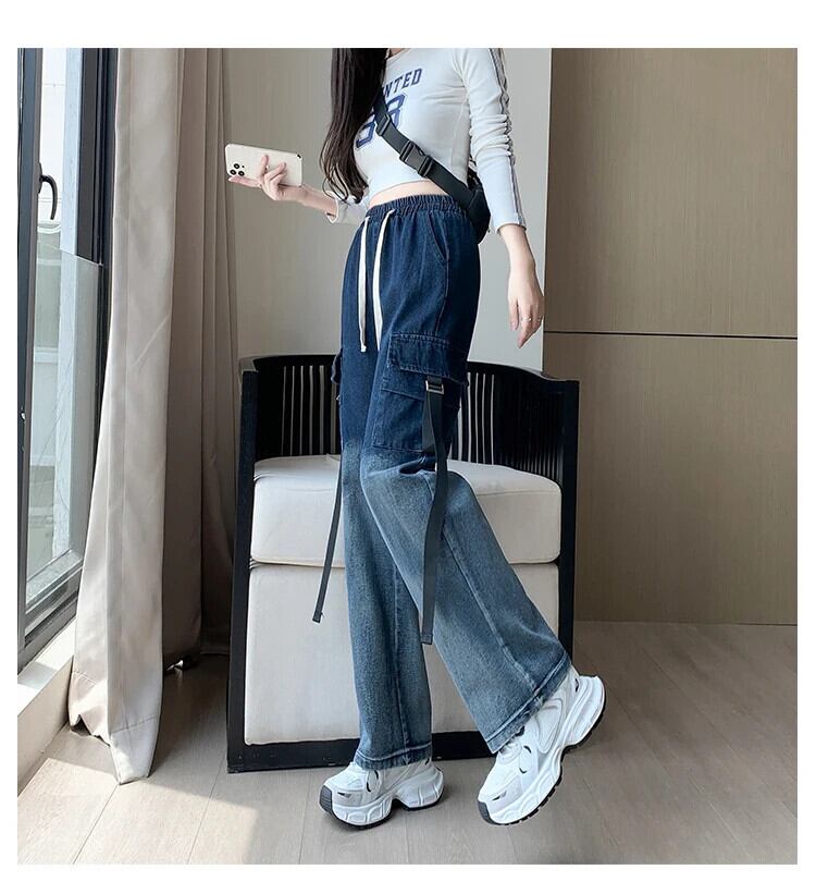 送料無料 レディースヴィンテージゴシックカーゴパンツ、ワイドレッグストレートジーンズ、ハイウエスト、カジュアル、バギー、新しいスタイル、春、秋、2022 AE5545541066272281