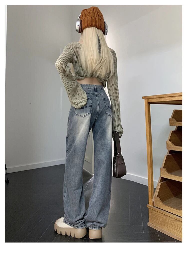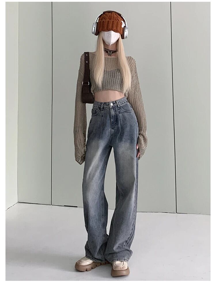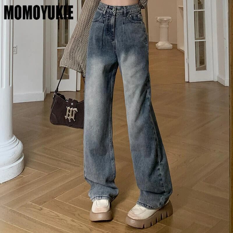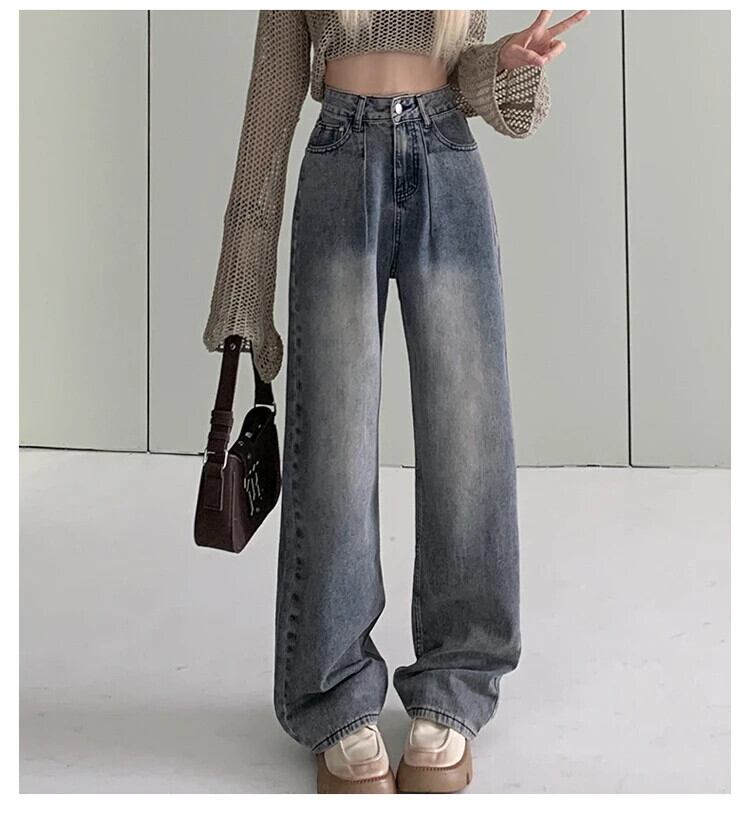 送料無料 Damen-Jeans mit weitem Bein、2024、Herbst und Winter、neue verdickte Vintage-Jeans、hoch taillierte、schlankmachende、drapierte、lange Hosen mit geradem Bein ウィンター 冬物 ビンテージ AE55455438331321745