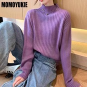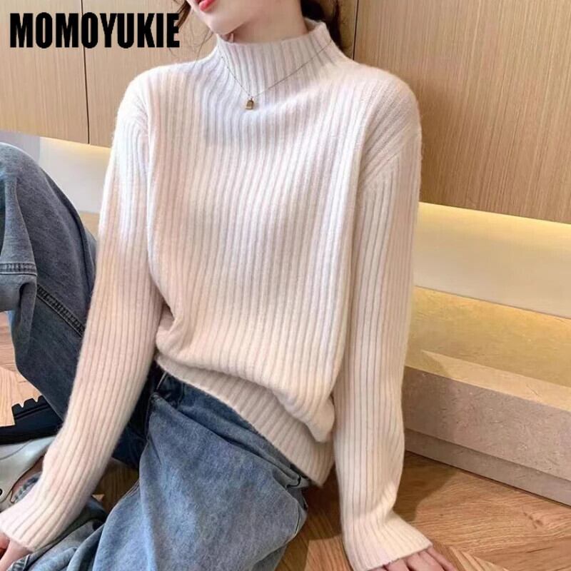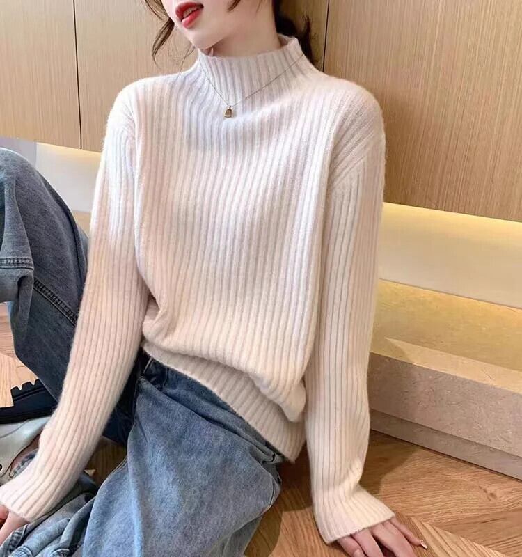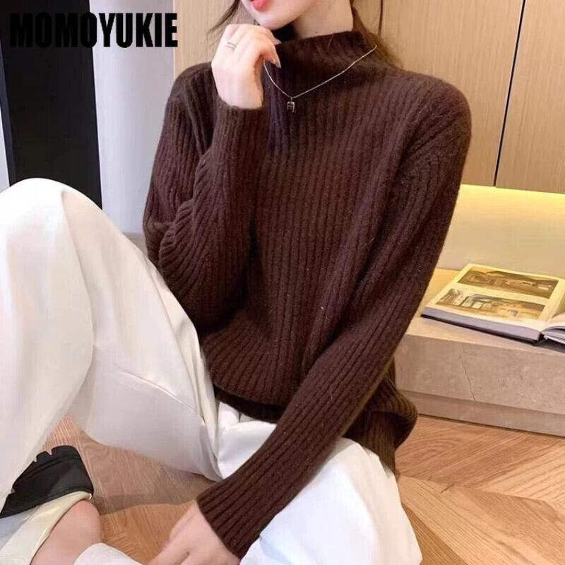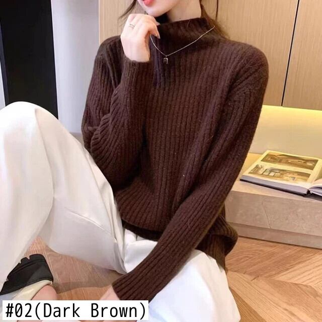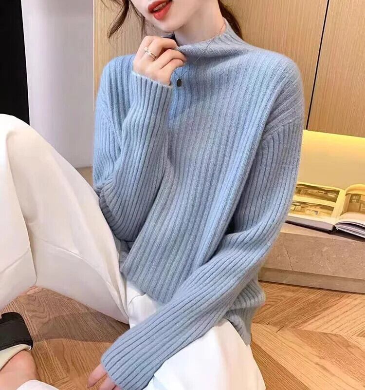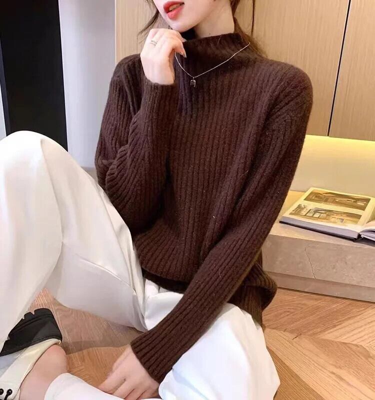 送料無料 レディース タートルネックハーフポロセーター、ニットセーター、多目的、聞こえる、ルーズフィット、ベースレイヤー、スタイリッシュ、新しいスタイル、秋、冬、2022 AE55455464492136697