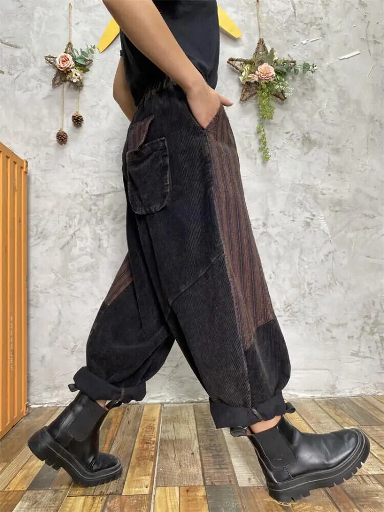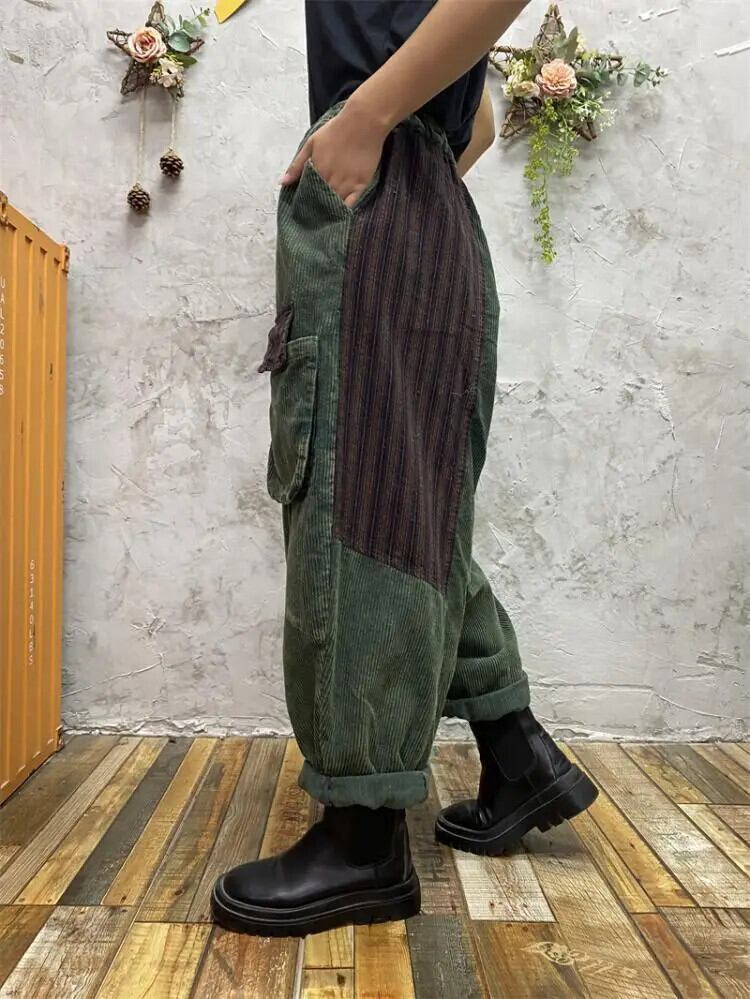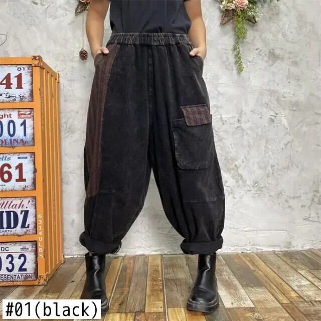 送料無料 のカジュアルなパッチワークパンツ、ヴィンテージスタイル、つるぎのような色、ストレッチ伸縮性、伸縮性、春秋 AE55455464351204690