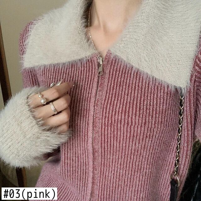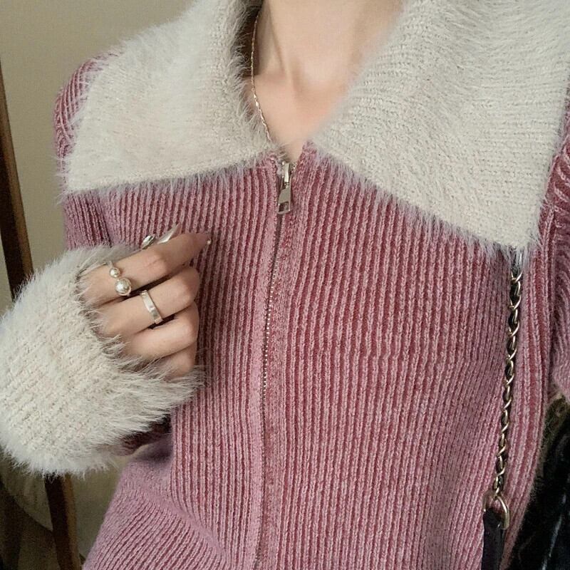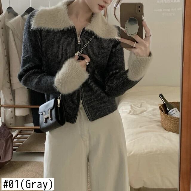 送料無料 レディース ダブルジッパーキレトロニットカーディガン、ファーカラー、多目的、品質、秋冬、2024 AE55455436813608325