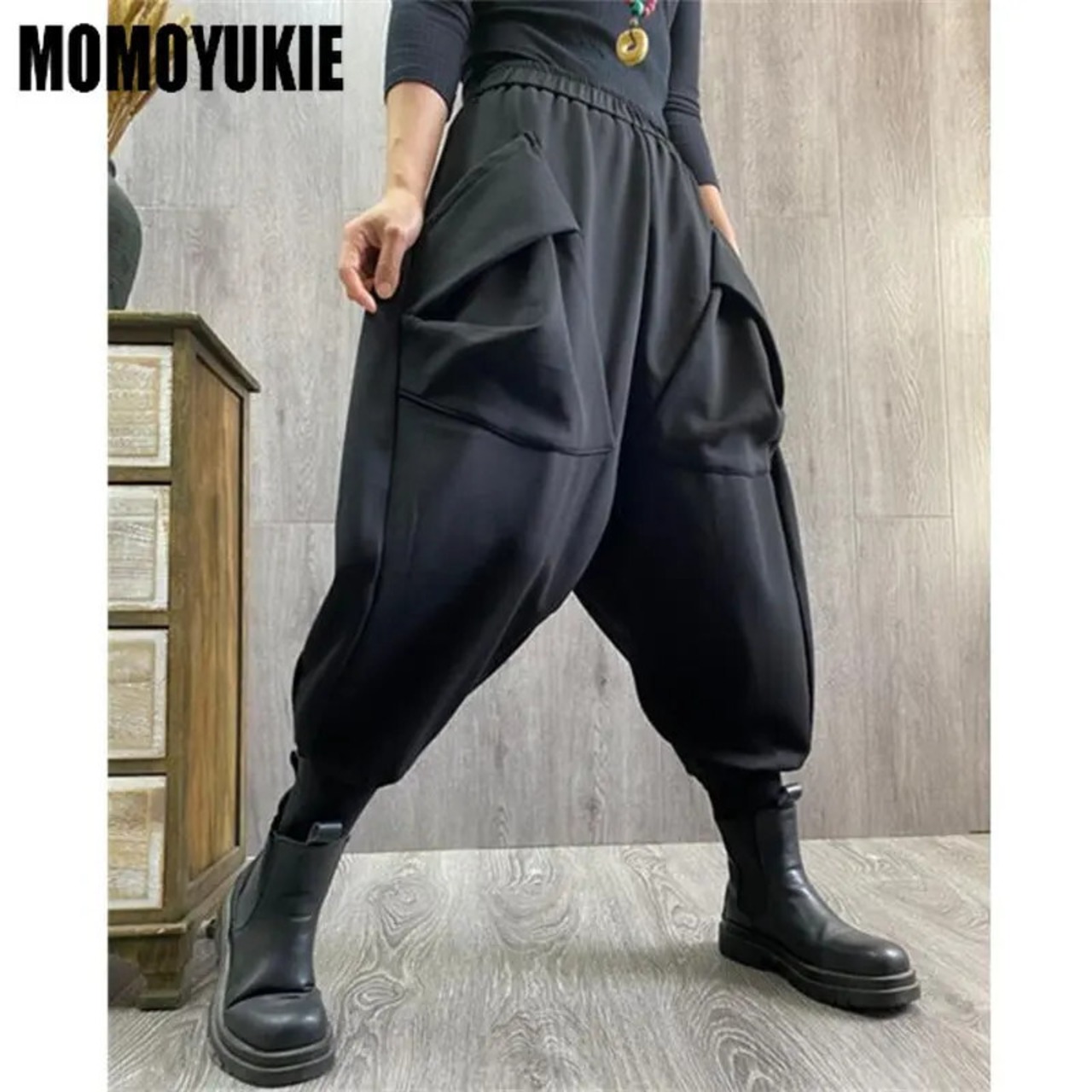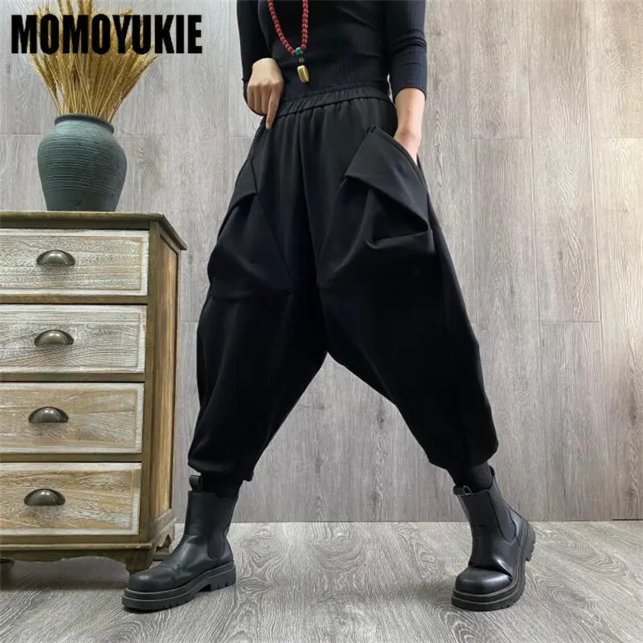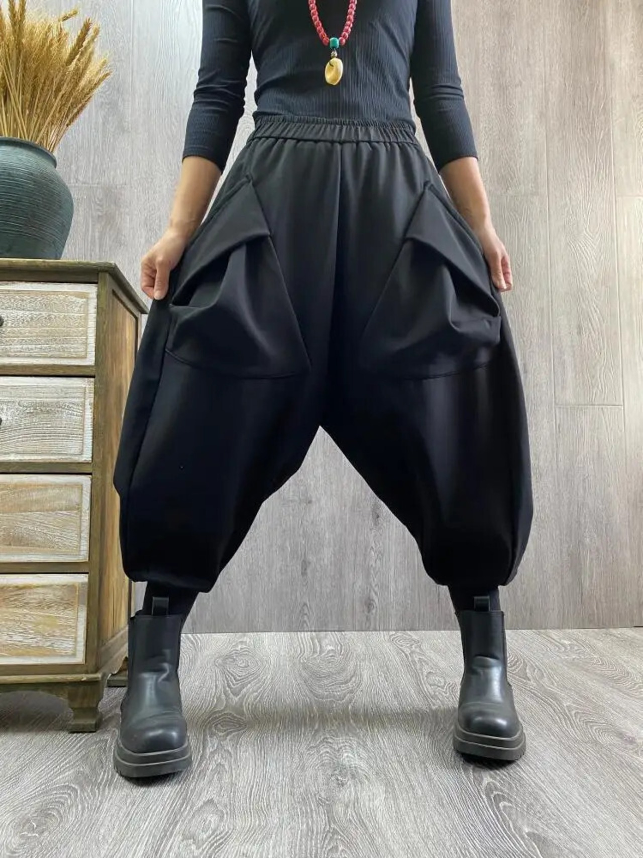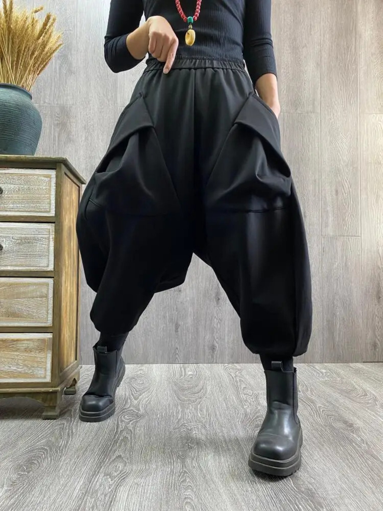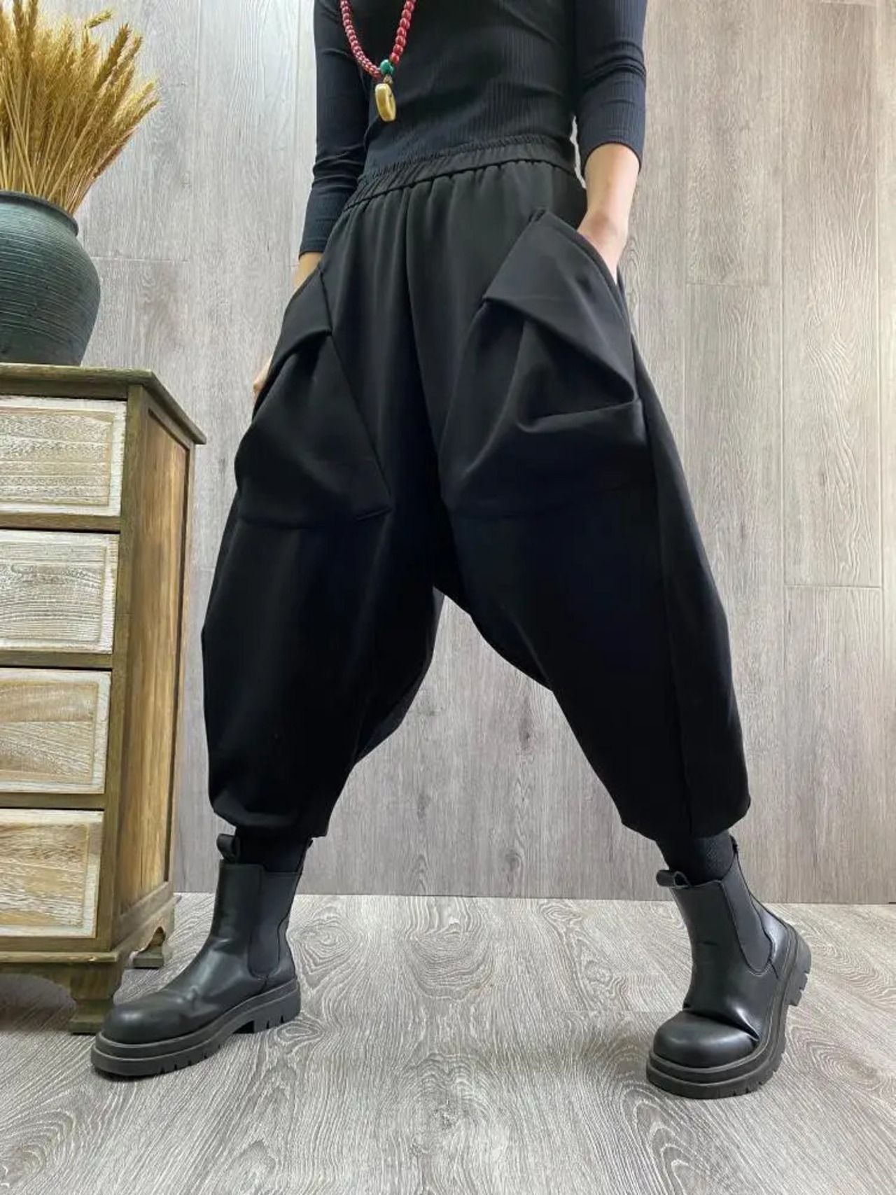 送料無料 のカジュアルなハイウエレンパンツ、大きめきなポケット、プリーツ、変則的な伸縮性のあるハイウエスト、ルーズフィット、新しい春と秋のストリートウェア AE55455494673811959 | 女性の為の通販サイト-fashion navi