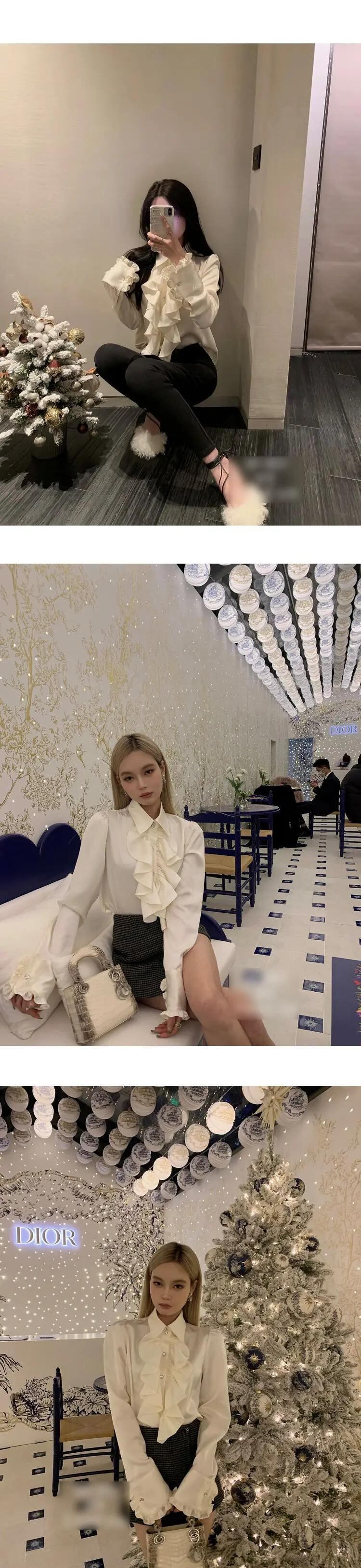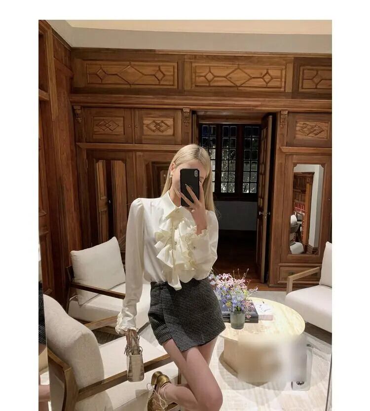 送料無料 レディース長袖ブラウス、エレガントな原宿シャツ、無地、フリルフキ、シックでカジュアルな作業服、春と秋のコレクション AE55455429722966218