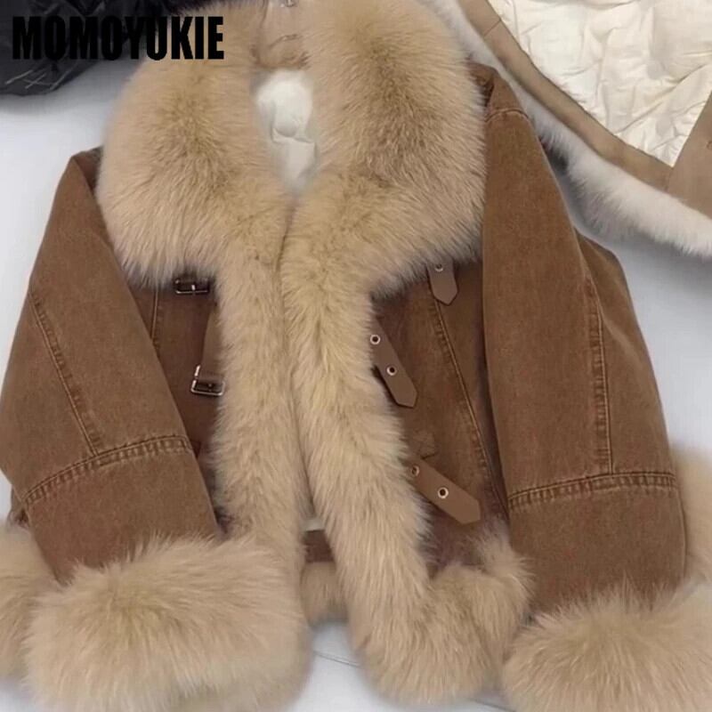 送料無料 2024 Winter Lose Vielseitig Neue Stil ischen Stil Große Pelz Kragen Jacke für Frauen Verdickt Warme Baumwolle Jacke ウィンター 冬物 AE55455444379741979