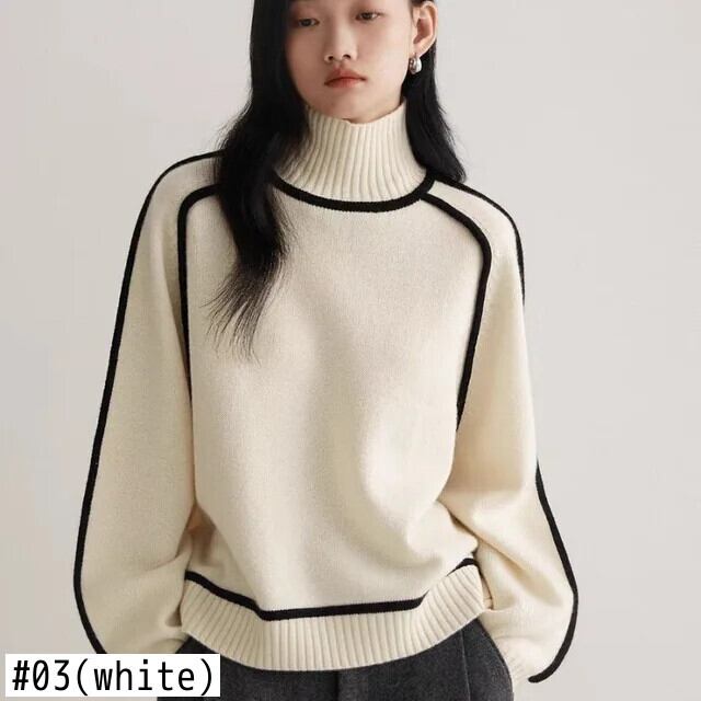 送料無料 レディース ニットプルオーバー、ハイカラートップ、長袖、カラーブロック、モノクロ、エレガント、新作っぽい、2022冬 AE55455443826456939