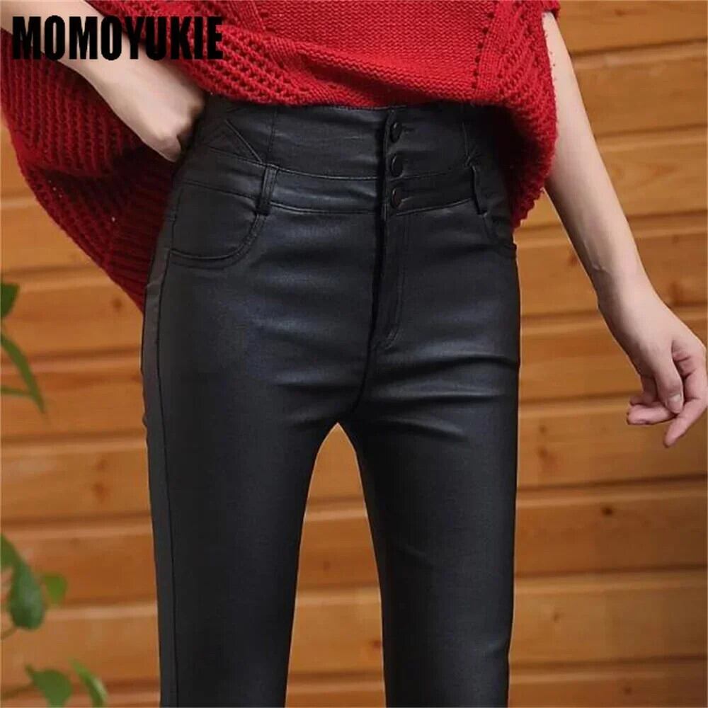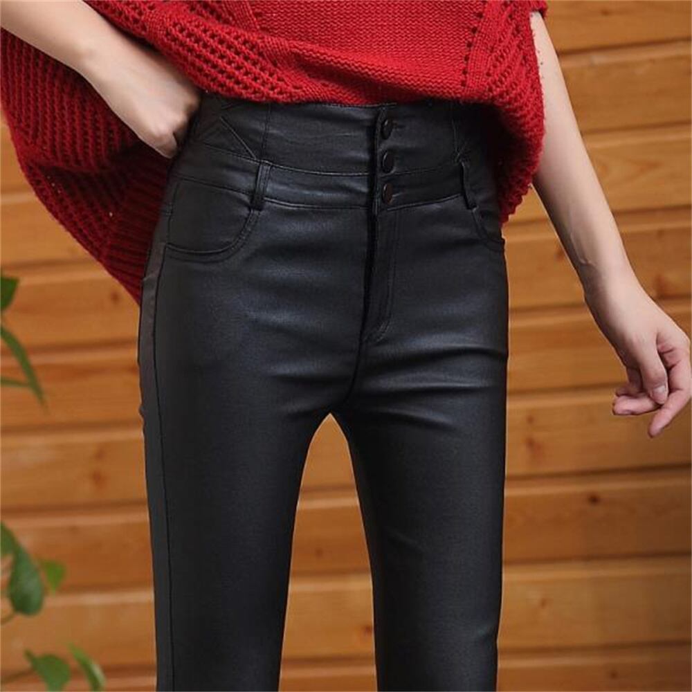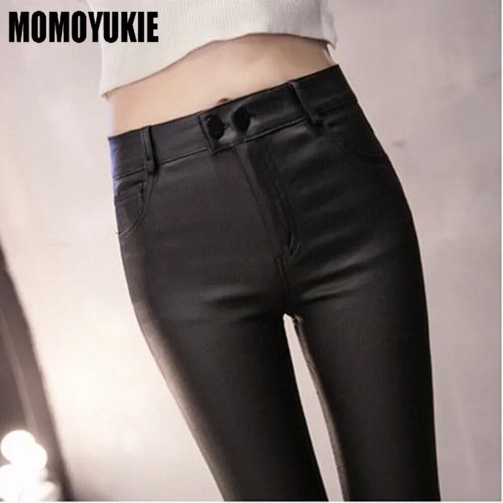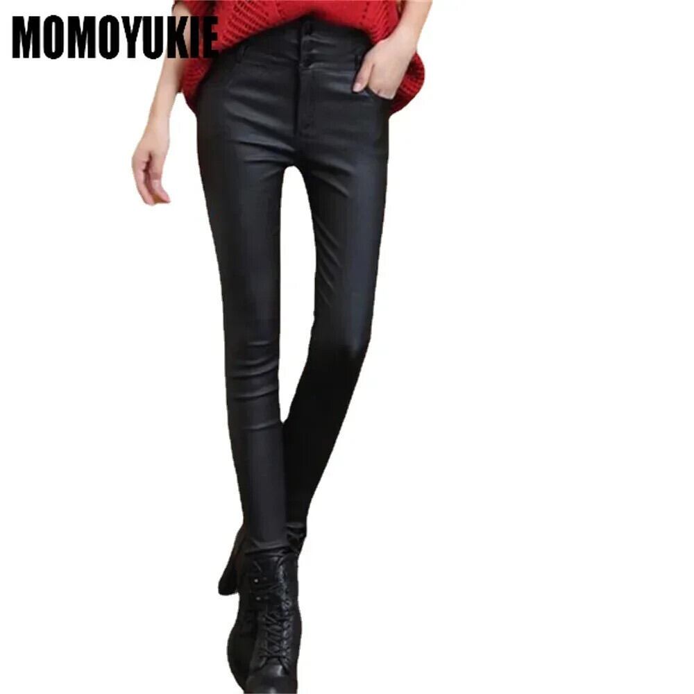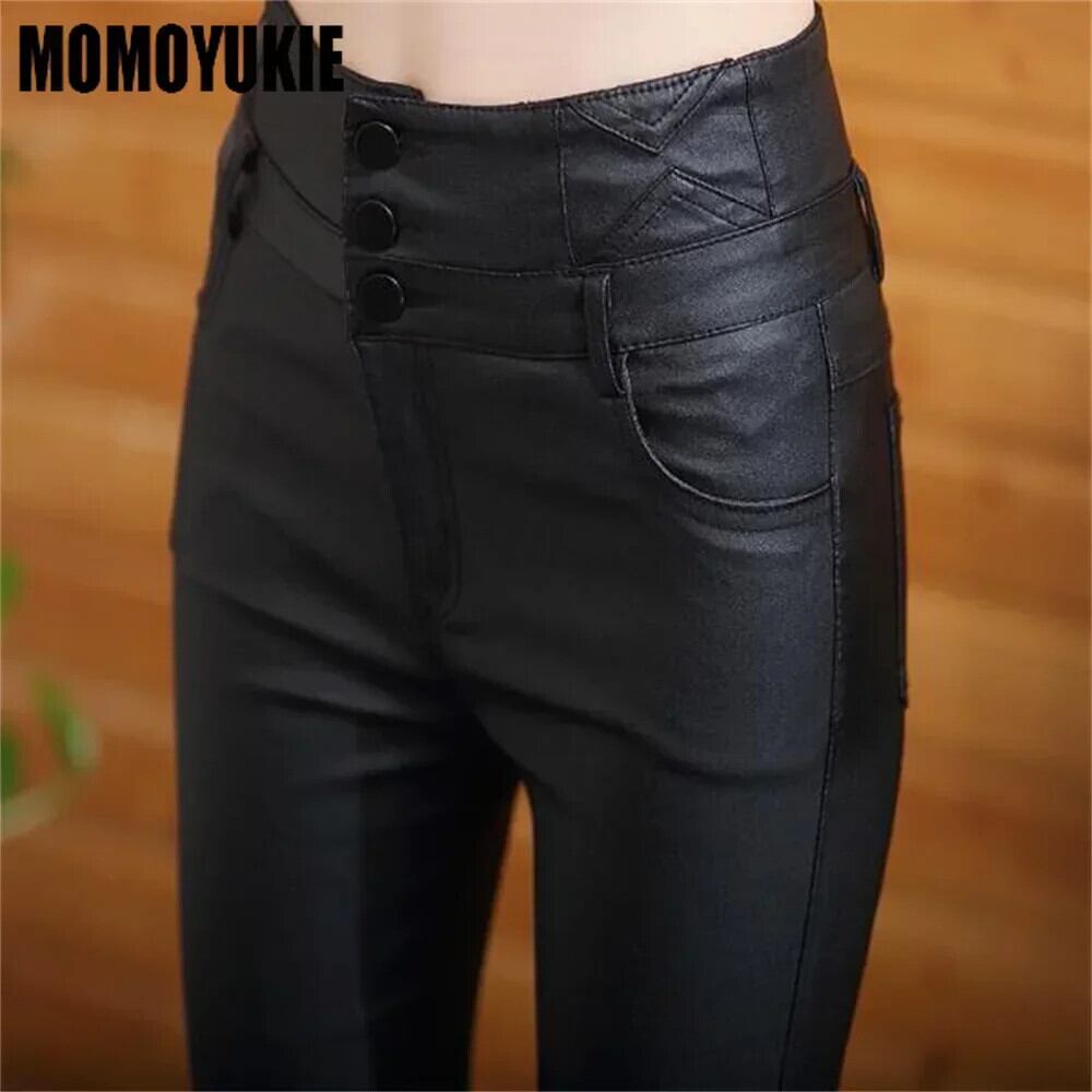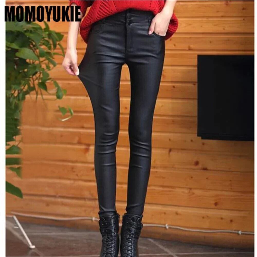 送料無料 レディースハイウエストレザーパンツ、合成皮革パンツ、無地、レディーススリムレギンス、マット AE554554294055686