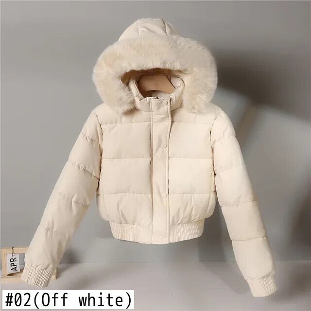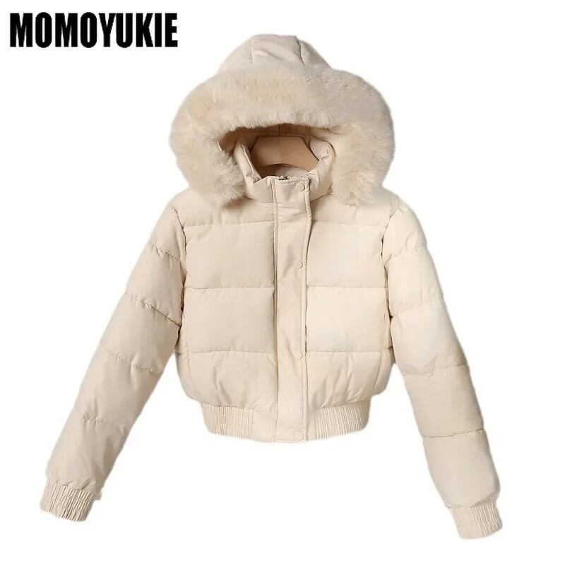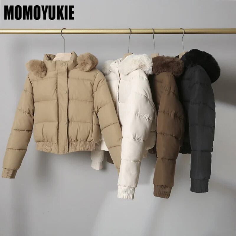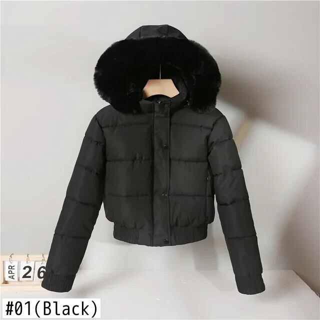 送料無料 women, ショートコットンパッド入りジャケット, フリーライナーフードフキコート, 厚手のファーカラー, 暖かいカイオーバーコート 学生, 冬のファッション, 2024 AE55455447596876276