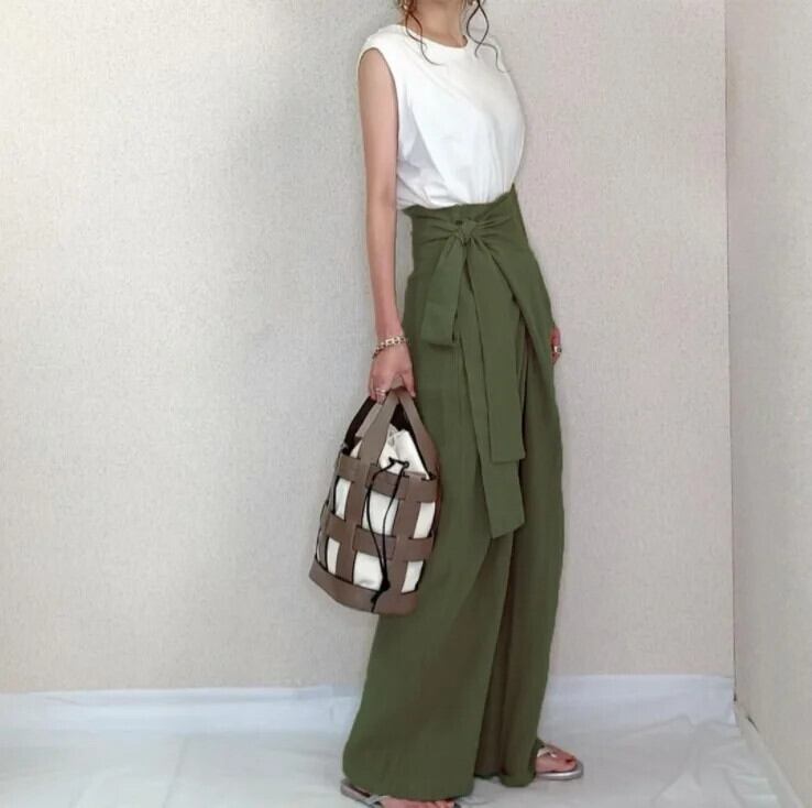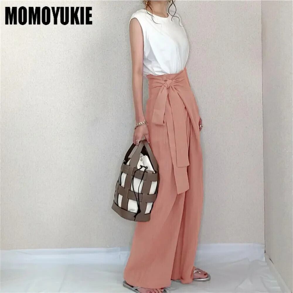 送料無料 のハイウエストバギーパンツ,リネンとコットン,ワイドレッグ,カジュアル,春と秋,2022 AE55455489630002316