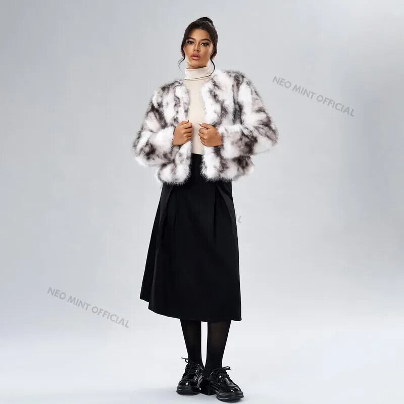 送料無料 Neo Mint 2024 Winter Pluizige Faux Vos Bontjas Vrouwen Merk Mode ストリートウェア オーバージャシック Meisjes Warme Korte Harige Bont jas ウィンター 冬物 ファー AE667767629377537876