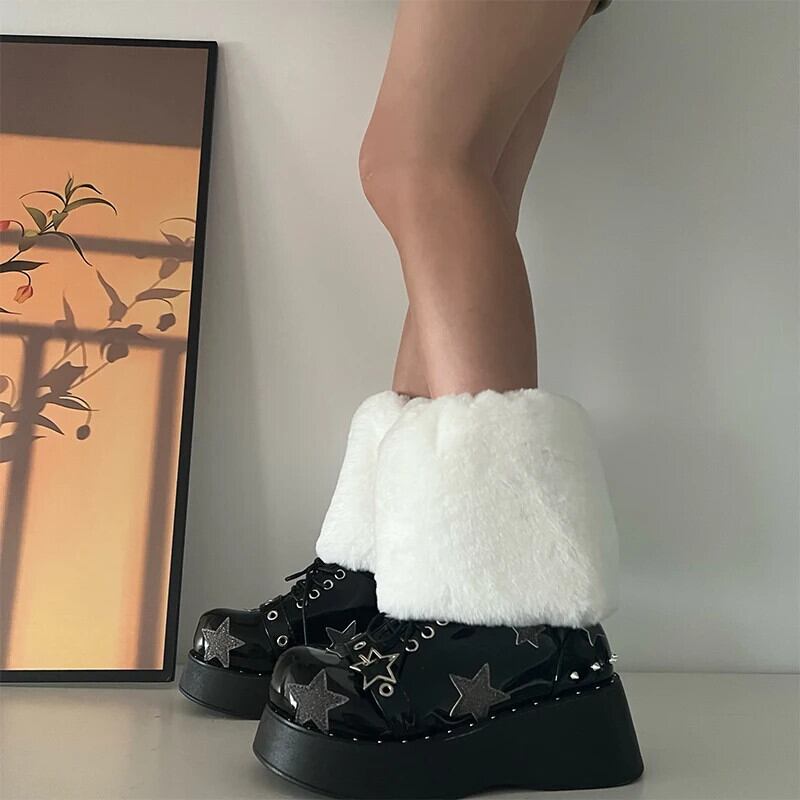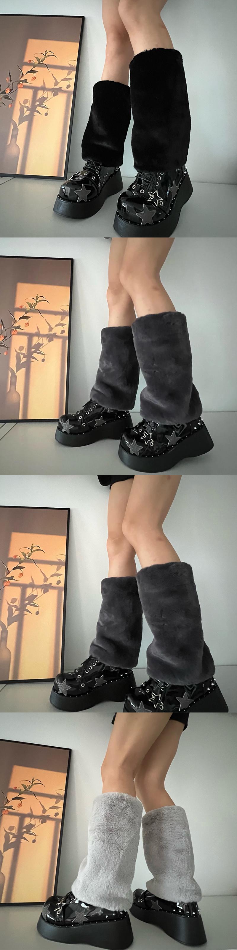 送料無料 原宿 Y 2K モード Meisjes Faux Konijnenbont Beenwarmers Vrouwen Goth Punk Rave Cyber Fluffies Kostuum Leggings Laars Covers Clubkleding かわいい ファー AE667767652196321708