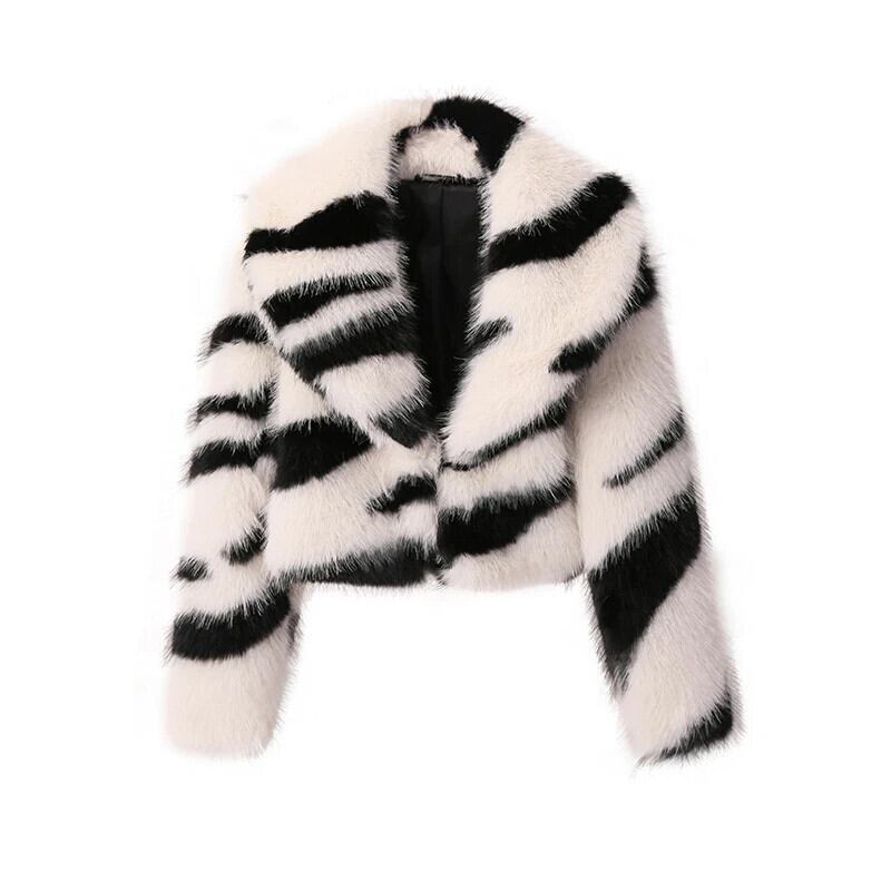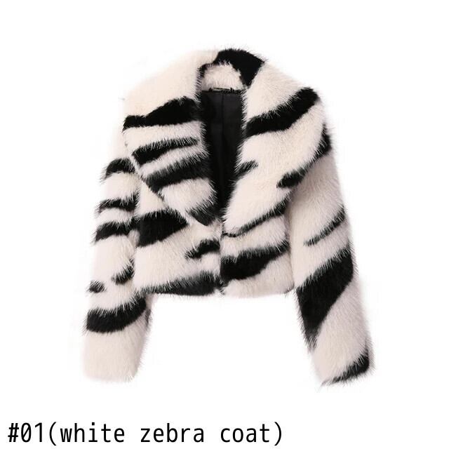 送料無料 Y2k heiße Mädchen koreanische Mode kurz geschnittenen Zebra Pelzmantel Frauen Winter Goth Punk flauschigen pelzigen großen Kragen Kunst fuchs Pelz kurze Jacken ウィンター 冬物 AE667767659431889080