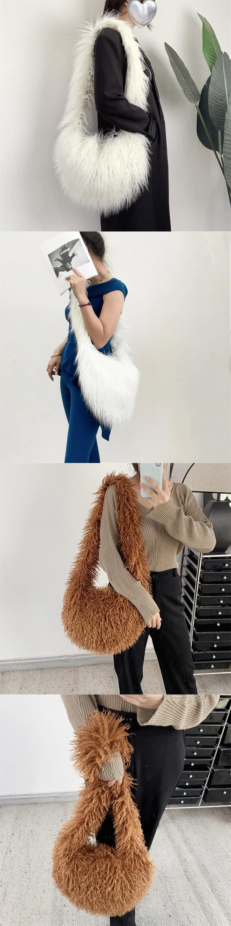 送料無料 原宿モード niedlichen süßen Herzen gemte pelzige Umhängetasche Frauen ins Punk y2k heiße Mädchen übergroße Kunst pelz Hobos Umhängetaschen かわいい AE667767648626518066