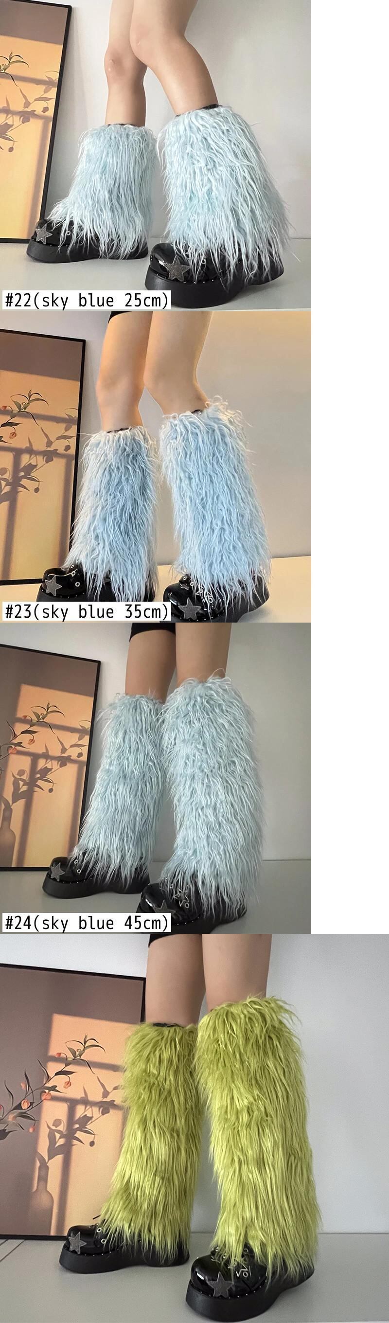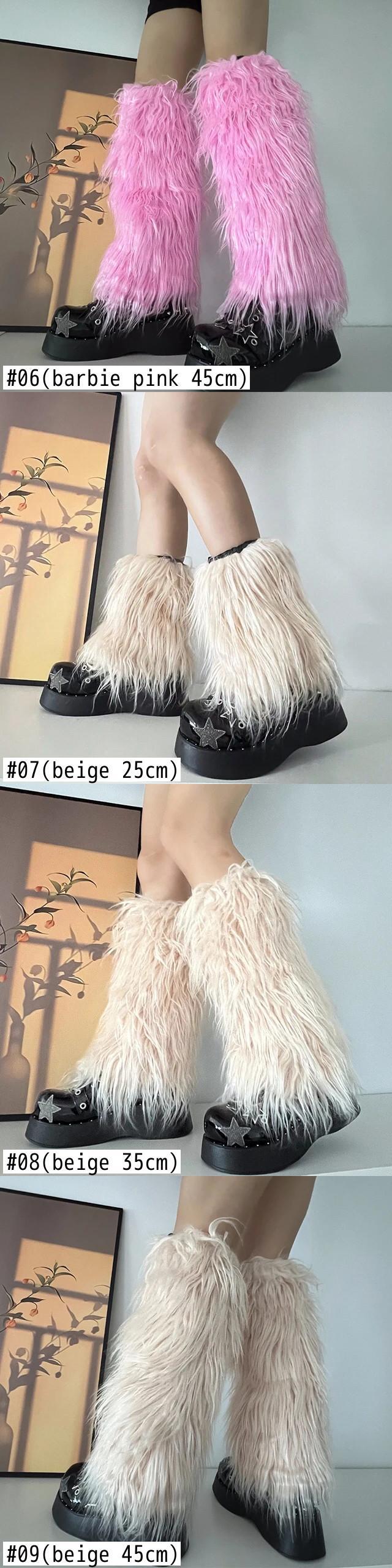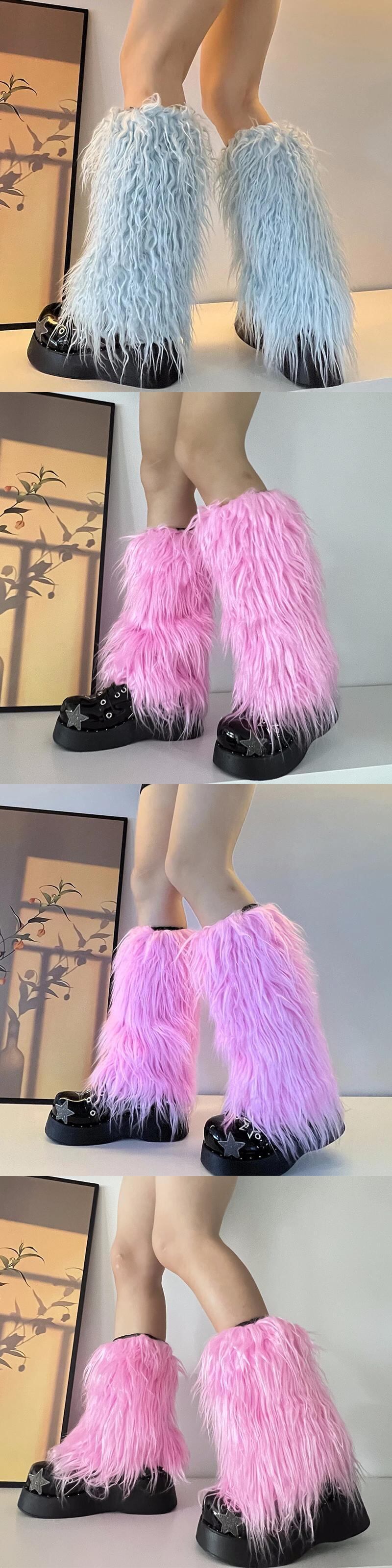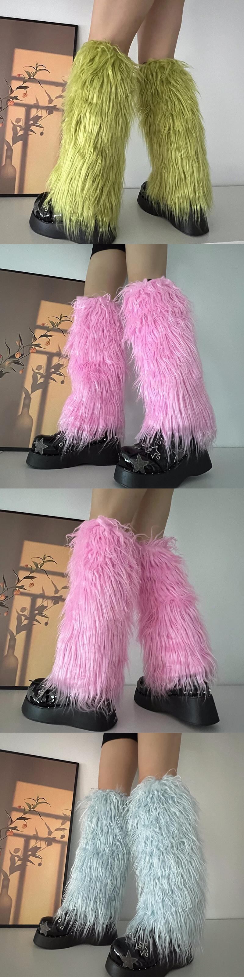 送料無料 Luxus Shag pelzigen Kunst pelz Beinlinge Frauen bunte feste Gogo Fluffies Y2k Mädchen Mode サイバー ヒップホップ レッグウォーマー ブーツカバー AE667767683949052637
