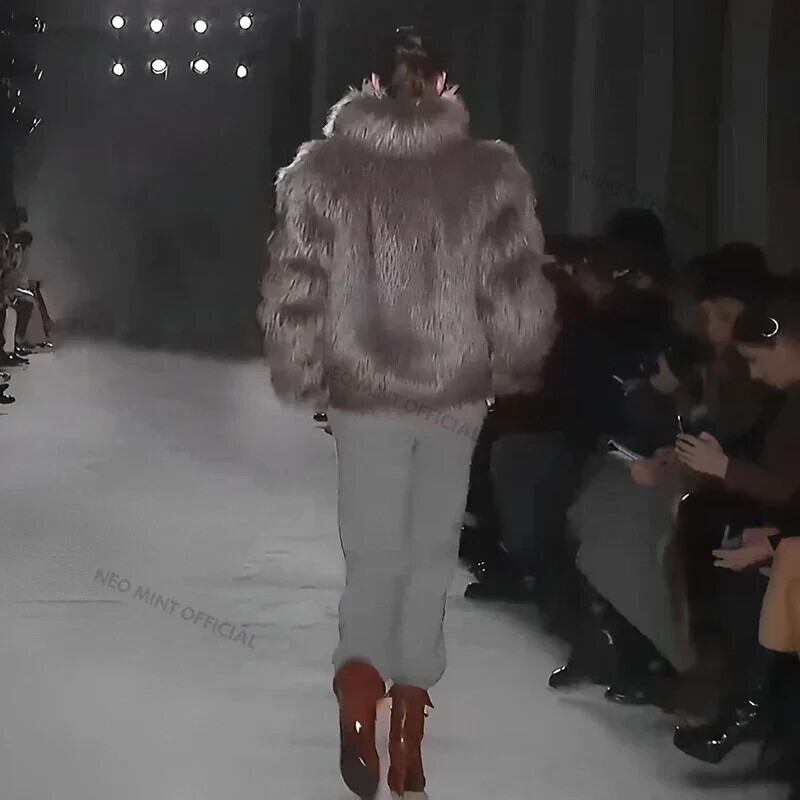 送料無料 Luxus Marke Runway Flauschigen Faux Pelzmantel Frauen Luxuriöse Fuchs Pelz Stehkragen Kurze Jacke 2024 Winter ストリートウェア マンテル ウィンター 冬物 ファー AE667767617831935297