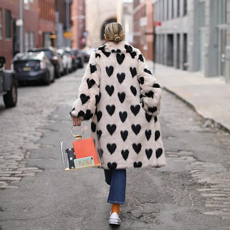 送料無料 2024 ウィンター モード Woche ikonische Marke Mode Lange Liebe Herz Muster hochwertige Kunst fuchs Pelzmantel Frauen Jacke plus Größe 5xl 冬物 AE667767642790598155