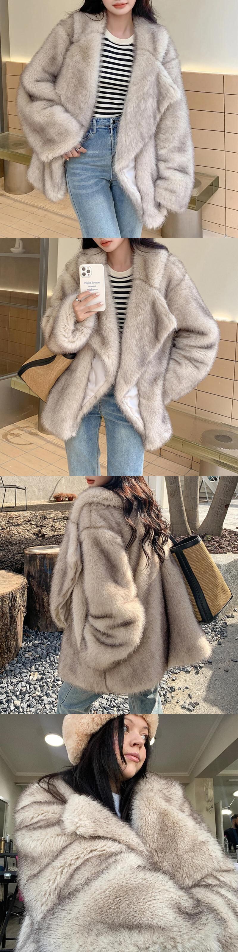 送料無料 Luxusmarke Mode Farbverlauf Tier farbe Kunst pelz Mantel Jacke Frauen 2024 Winter loss übergroße lange flauschige Mantel Oberbekleidung ウィンター 冬物 AE667767635254089715