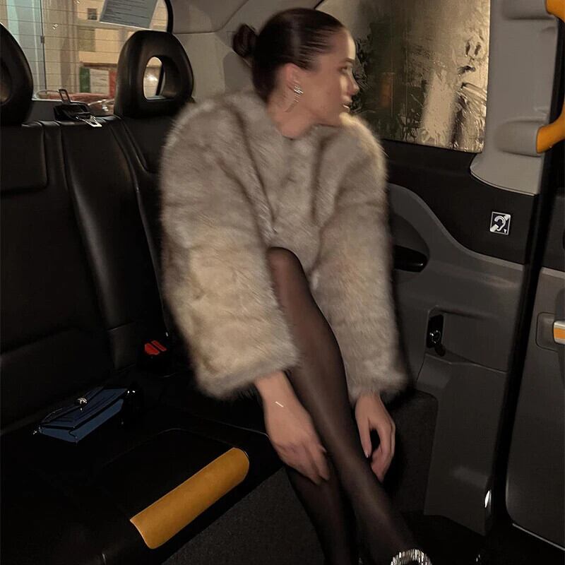 送料無料 Schicke Straßen ブロガー Mode Mädchen 冬のトレンド ige Faux Waschbär Fuchs Pelz Mantel Jacke Frauen digke warme kurz geschnittene flauschige Mäntel ウィンター 冬物 ファー AE667767625331598001