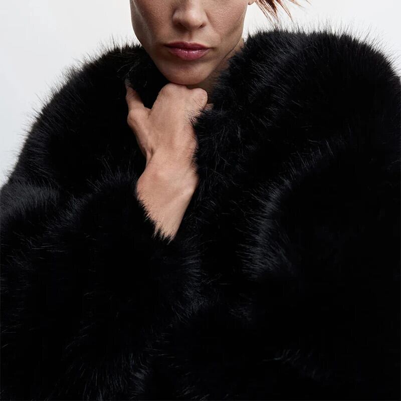 送料無料 Ins Hot Zwart Warm Gezellig Cropped Nepbontjas Dames Winter 2024 Chique Meisjes Street Luxe Korte Bontjas ストリート ウィンター 冬物 AE667767625661742532