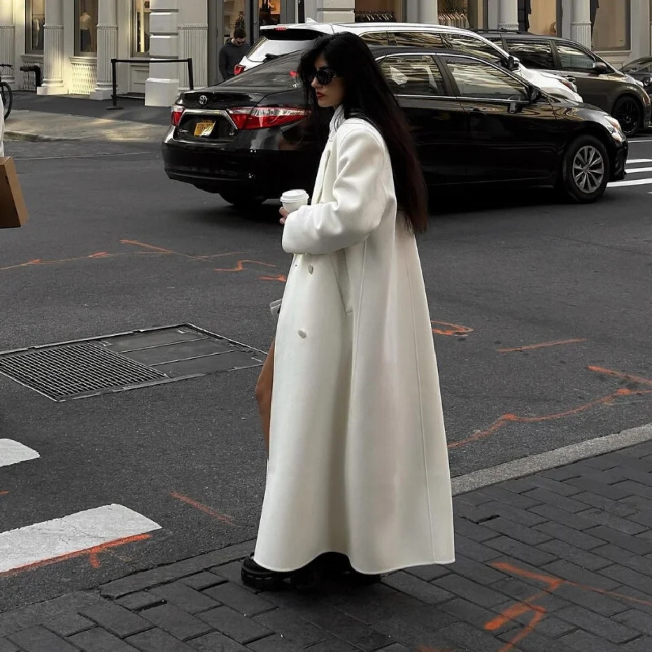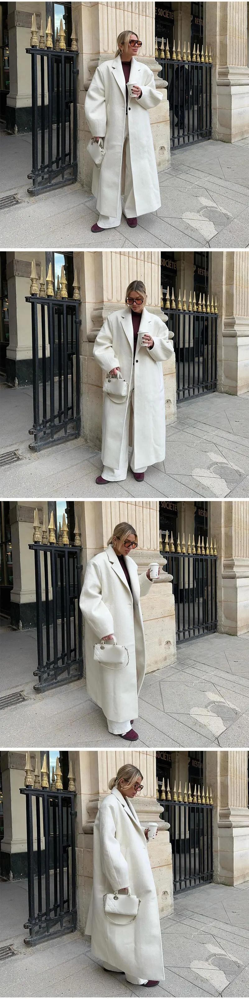 送料無料 e witte revers lange wollen jas met volledige mouw voor dames mode カジュアル ノップ オーバージャス ハーフスト ウィンター デイム ウンヴェルクヴァーケア ストリートウェア 冬物 AE6776774468944856