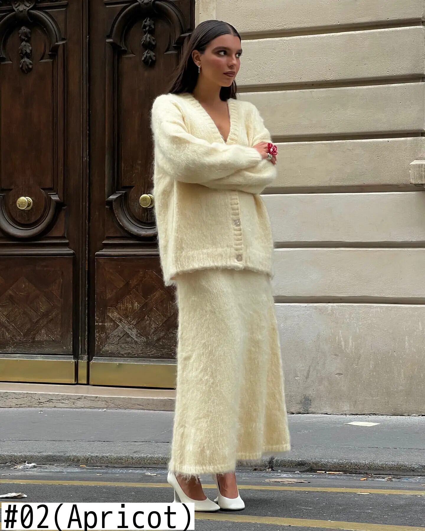 送料無料 Dames e Effen Mohair Rok Sets Herfst Gebreide V-Hals Vest Trui 2 Stuk Dames Losse Lange Rokken Mode Feestpakken AE6776771726453435