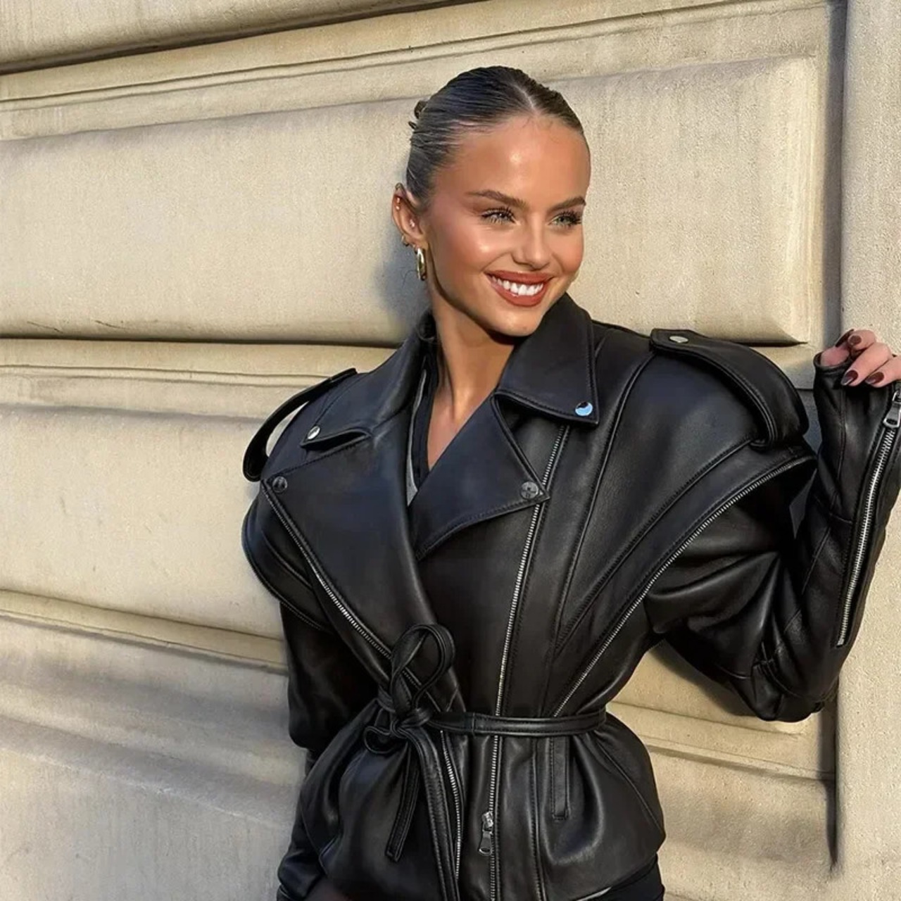 送料無料 ソリッド レースアップ Pu Leder Kurze ジャケット ファー Frauen Neue Chic Revers Kragen ジッパー Motorrad Mantel 2025、Weibliche Hohe ストリートウェア ソリッドカラー AE677674687799693 | 女性の為の通販サイト-fashion navi