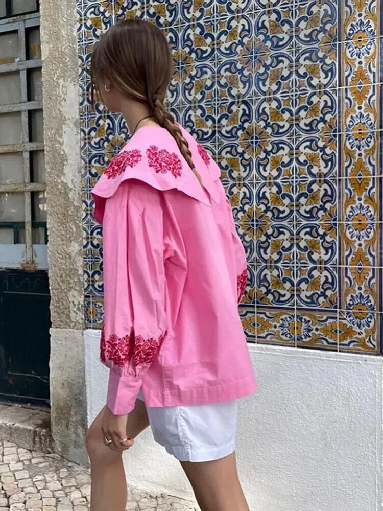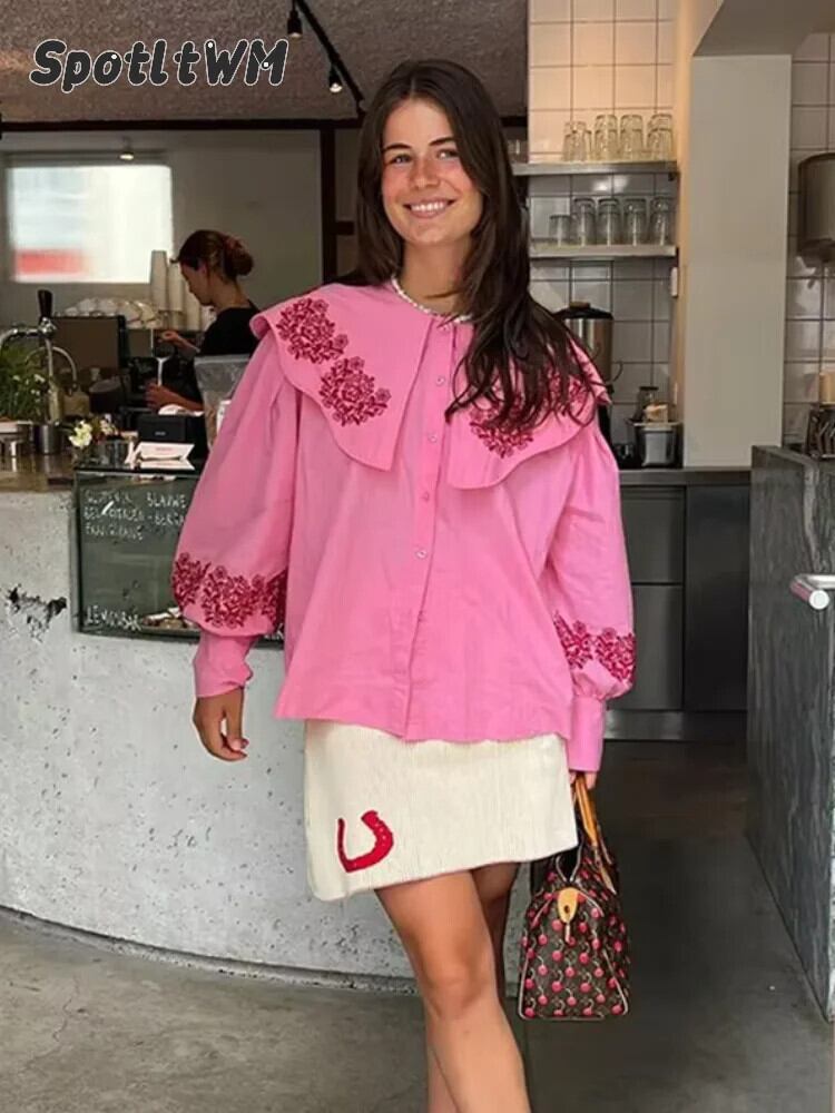 送料無料 Weibliche Mode Chic Drucken Große Revers シャツ Einreiher Langarm Bluse 2025、Frühjahr Neue Frauen Pendeln ストリートウェア AE6776775212256606