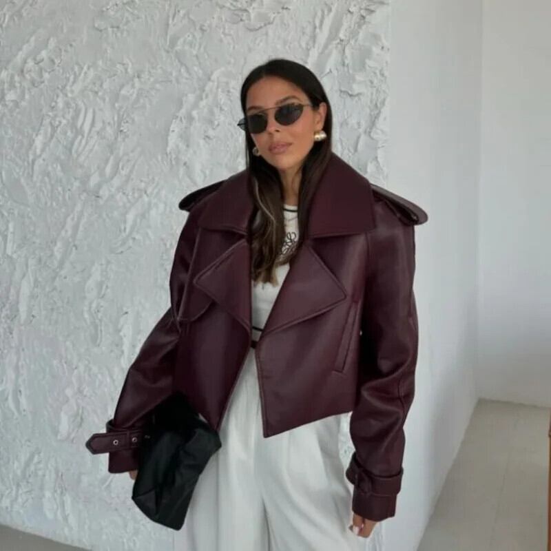送料無料 Schicke einfarbige Revers kurze Lederjacke Mode Damen Taschen lange Ärmel Kurz mantel 2024 Dame Herbst hohe ストリートウェア AE6776756239941476 | 女性の為の通販サイト-fashion navi