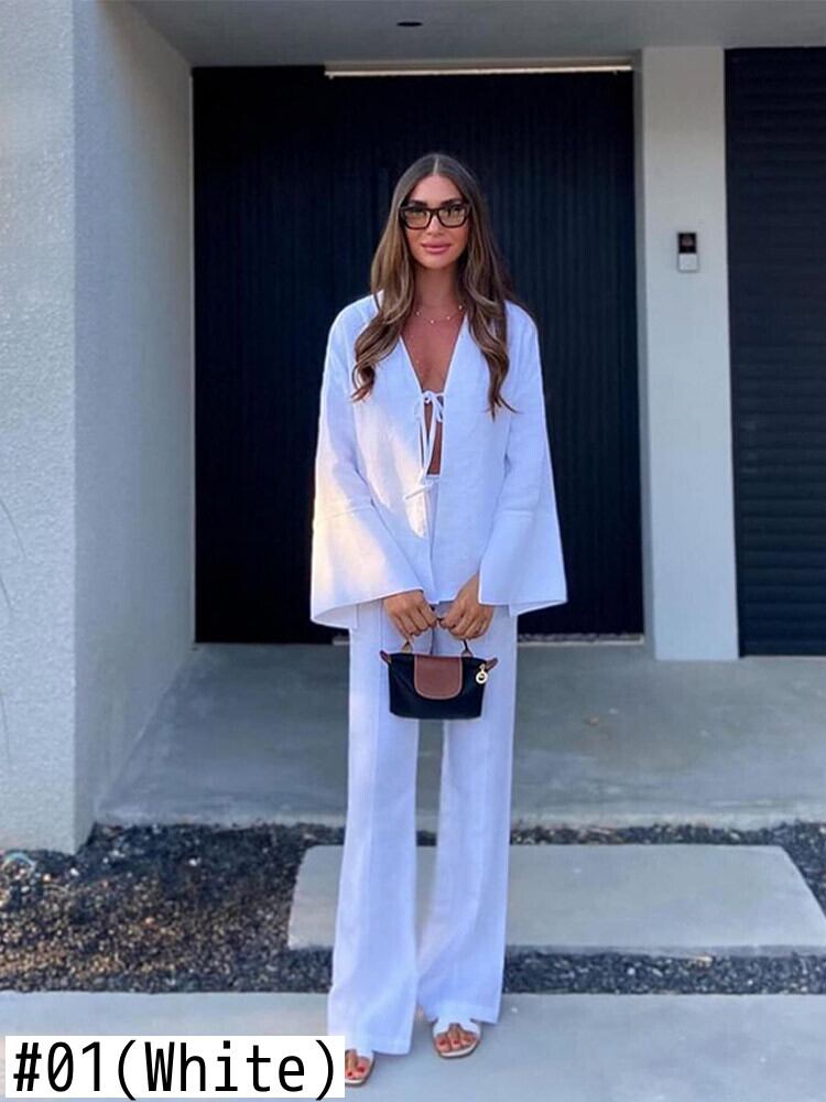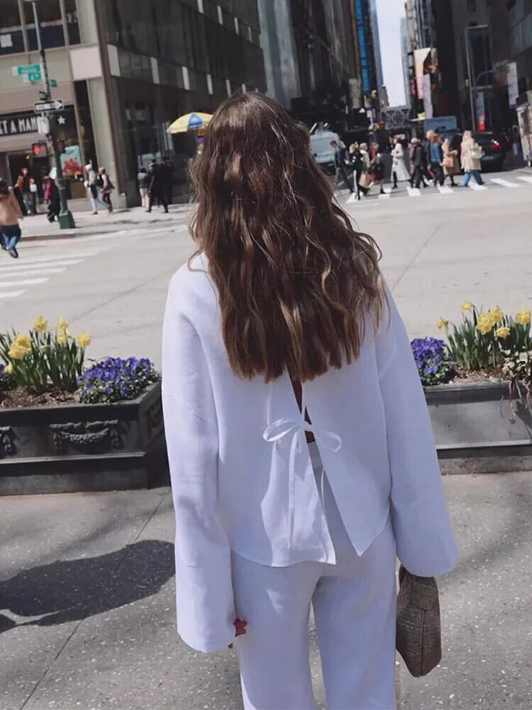 送料無料 Damenmode、weiß、V-Ausschnitt、aushöhlen、Schnürhemd、2025、neueエレガント、geteilte、langärmelige Bluse、weiblich、lässig、locke Frühlingsoberteile AE6776787302980501