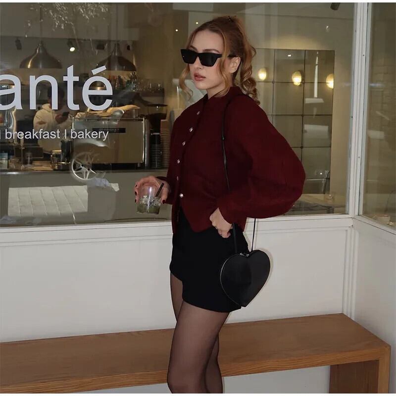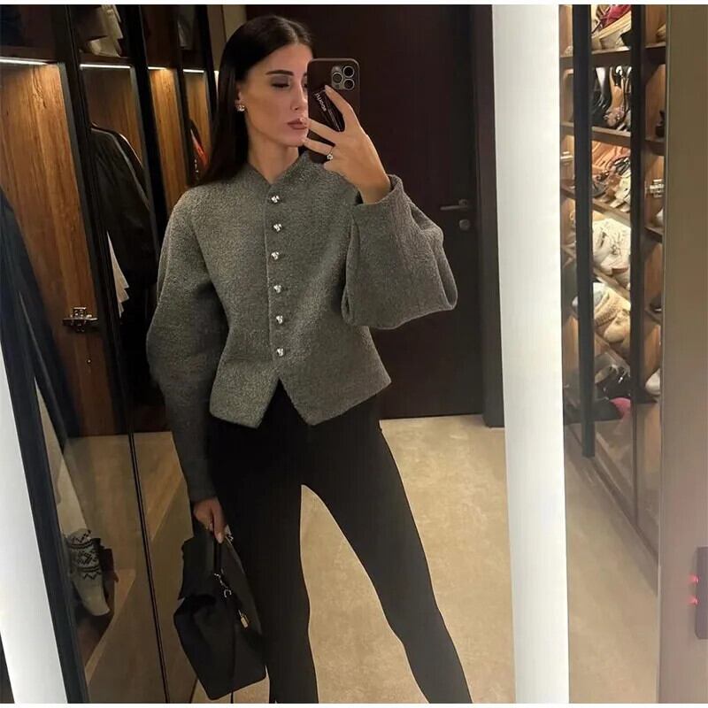 送料無料 e Frauen Feste Woll Jacke Mode Rundhals einreiher Langarm Mäntel 2025、Frühling Weibliche Pendeln Jacken AE6776739817438312