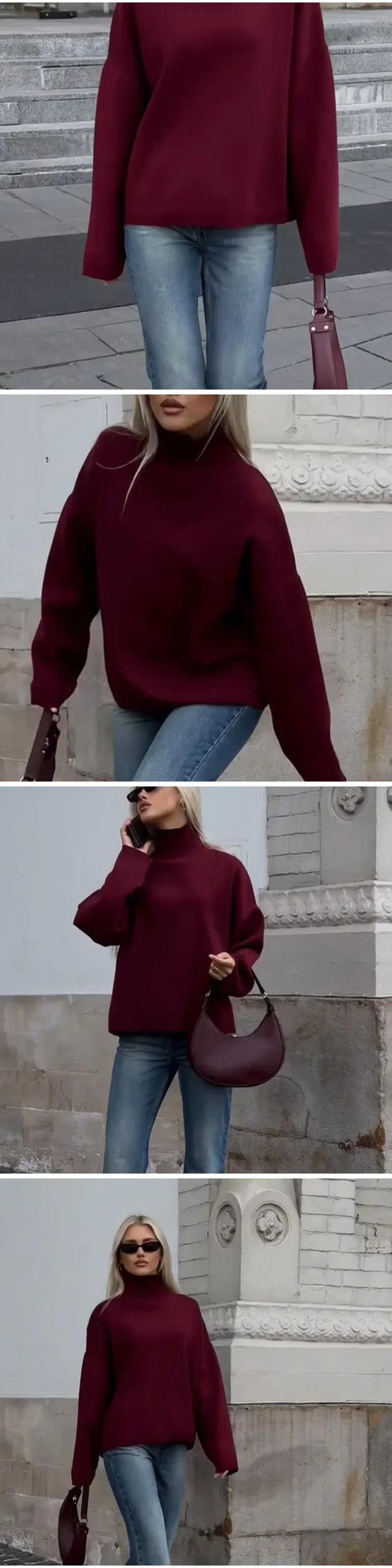 送料無料 Kausal Burgund Damen Herbst Winter gestrickte Stehkragenpullover Basic volle Ärmel weibliche schlanke プルオーバー 2024 warme Pendelkleidung ウィンター 冬物 AE6776797651676811